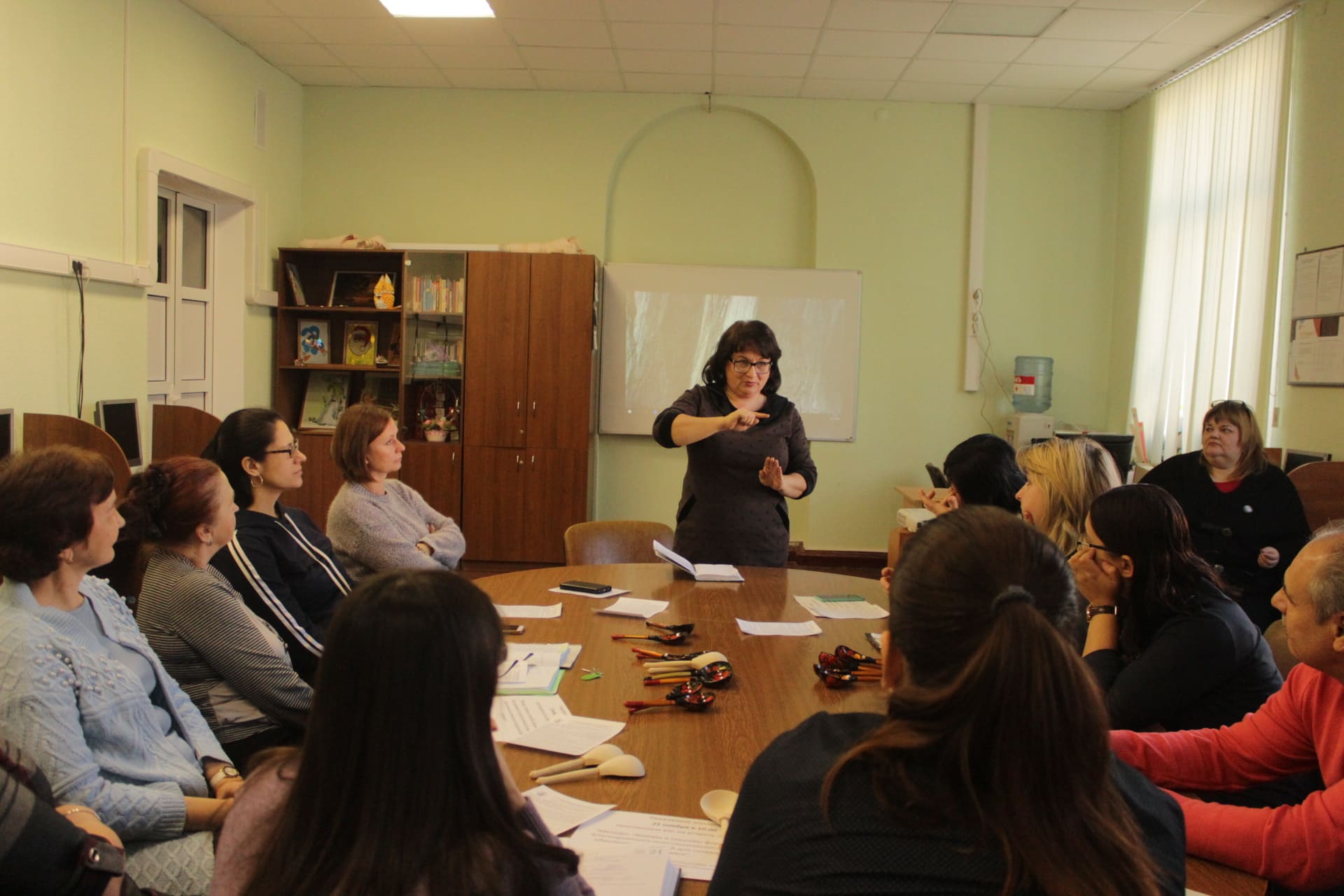 Педагоги приняли участие в творческом диалоге «Актуальное в работе с дошкольниками в условиях дополнительного образования», мастер-классах по вышивке лентами, валянию шерсти, работе с глиной, кружевоплетению. Обменялись опытом работы по темам: «Психологическая готовность детей к исполнению танца», «Нарушение осанки у детей. Компенсаторные упражнения и приёмы снятия мышечного напряжения», «Здоровьесбережение голосового аппарата, как рабочего инструмента педагога». Побывали на обзорной экскурсии-семинаре «От идеи до экспоната. Воспитательный потенциал Музея детской рукописной книги МАУДО «РГДДТ»».  Кроме сотрудников  Дворца свой опыт представили педагоги МБУДО «ЦДТ «Феникс». В мероприятиях приняли участие 110 человек.