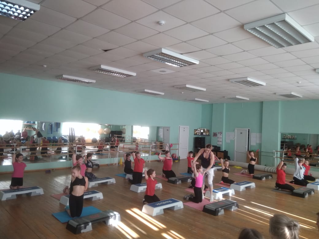 В группе оздоровительной аэробики у детей 8-12 лет прошло открытое занятие в рамках программы по профориентации для студентов 1-2 курса педагогического колледжа.
