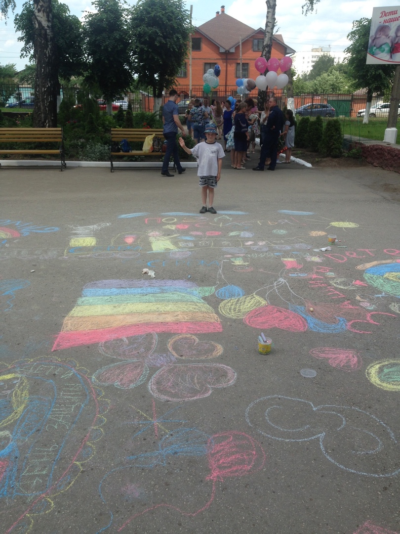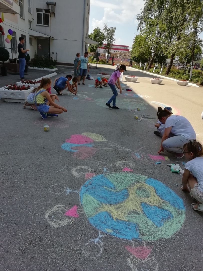 Ребята создали рисунки на асфальте, посвящённые семье, любви, мамам и детям.