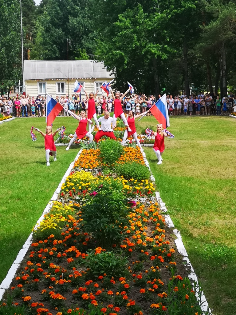 На концерте все отряды представили тематические музыкальные, танцевальные и спортивные подарки, прославляющие Россию. Концерт  завершился массовым финальным номером «Зажигай! Сделано в России!», посвящённым празднику.  В течение всего дня в лагере проходили спортивные соревнования, творческие мастерские, а завершился день танцевальной «массовкой» «Мы танцуем и поём по-русски»», где звучали  песни советских и российских авторов.