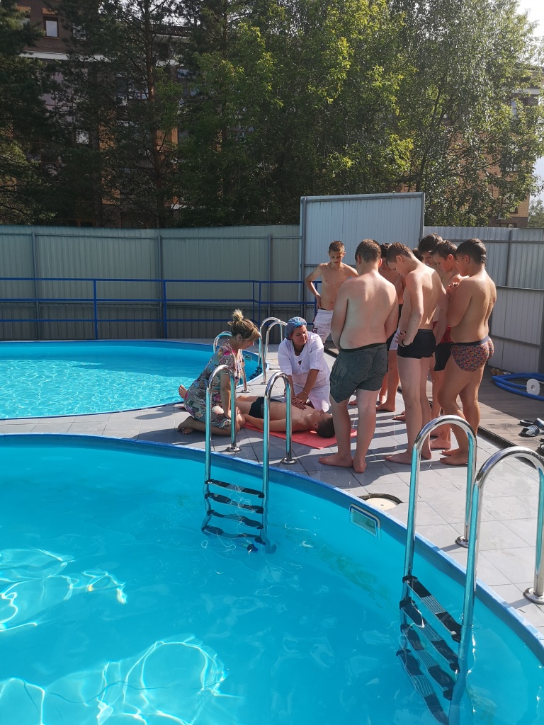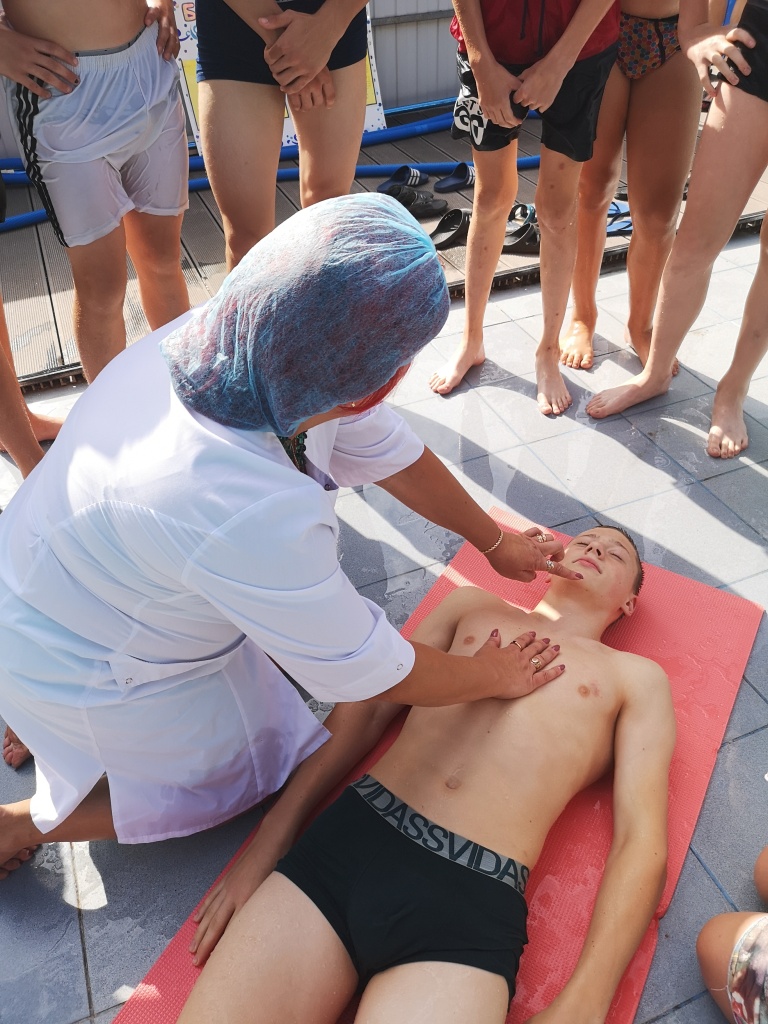 Занятиями по безопасности были охвачены все дети лагеря. Квалифицированно просветить ребят и продемонстрировать на практике приёмы оказания неотложной помощи помогла врач лагеря Галкина Татьяна Михайловна, врач-реаниматор Областной детской клинической больницы. На занятиях присутствовали и делали сообщения для детей по различным темам, касающимся безопасному поведению, предотвращению непредвиденных ситуаций, исключению несчастных случаев Кузнецова Татьяна Борисовна, заместитель директора МАУДО «РГДДТ» по оргмассовой работе и детскому отдыху, Рогова Марина Васильевна, руководитель структурного подразделения, Королева Екатерина Анатольевна, старший воспитатель, инструктор по физической культуре Мостяев Владимир Владимирович. Дети задавали вопросы, активно участвовали в моделировании ситуаций, направленных на оказание помощи в экстремальной ситуации на воде.