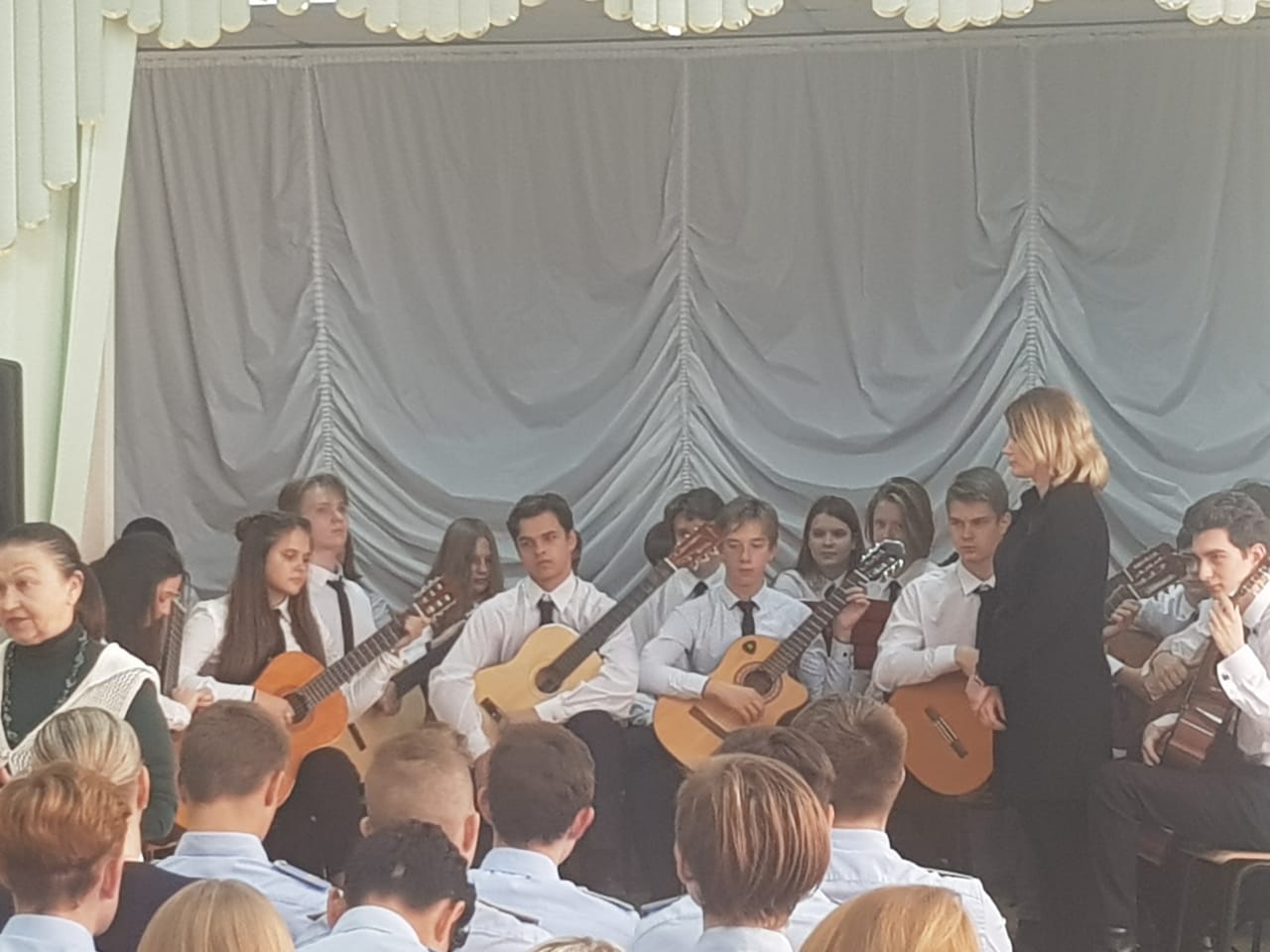 Поэтический театр "Вдохновение" (рук. Ивахина В. М.) и оркестр гитаристов Дворца детского творчества (рук. Долгова Т. А.) с успехом выступили с литературно-музыкальной композицией "О войне, любви и нравственности" перед студентами Рязанского железнодорожного колледжа. Юноши и девушки, затаив дыхание, слушали стихи, песни, оркестровые композиции в исполнении юных артистов. Этим концертом ребята открыли программу, которую подготовили к 75-летию Победы в Великой Отечественной войне. В планах коллективов - дальнейшее расширение репертуара и аудитории.