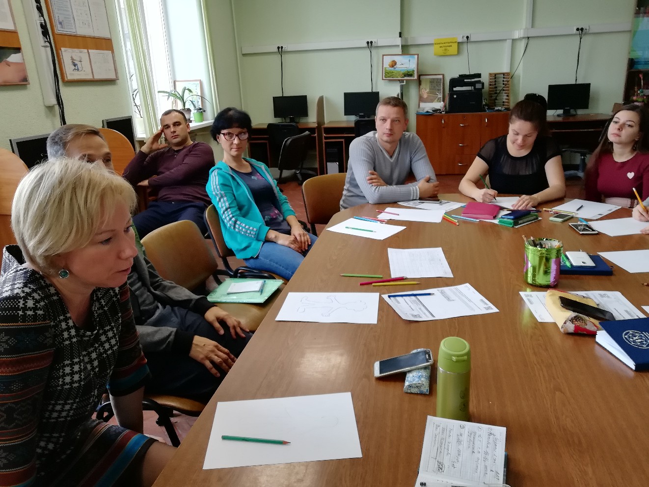 24 октября в МАУДО "РГДДТ" открыло свою работу городское методическое объединение социально-педагогической направленности по теме: "Здровьесберегающие технологии в профилактике профвыгорания педагога". Основной целью встречи было повышение уровня психолого-педагогической компетентности участников в области сохранения и укрепления профессионального здоровья. Педагог-психолог МАУДО "РГДДТ" Паршина Н.В. рассказала о проблеме эмоционального выгорания, его факторах, признаках и способах предупреждения. С целью самодиагностики участникам было предложено ответить на вопросы анкеты оценки синдрома эмоционального выгорания. В процессе практической части специалист МДЦ "Фудзи" Аникина О.М. познакомила участников встречи с техниками плассотерапии и приемами саморегуляции, снижающими эмоциональное напряжение, а педагог дополнительного образования МАУДО "РГДДТ" Парамонова Д. И. - с системой дыхательных упражнений на занятиях народного пения.