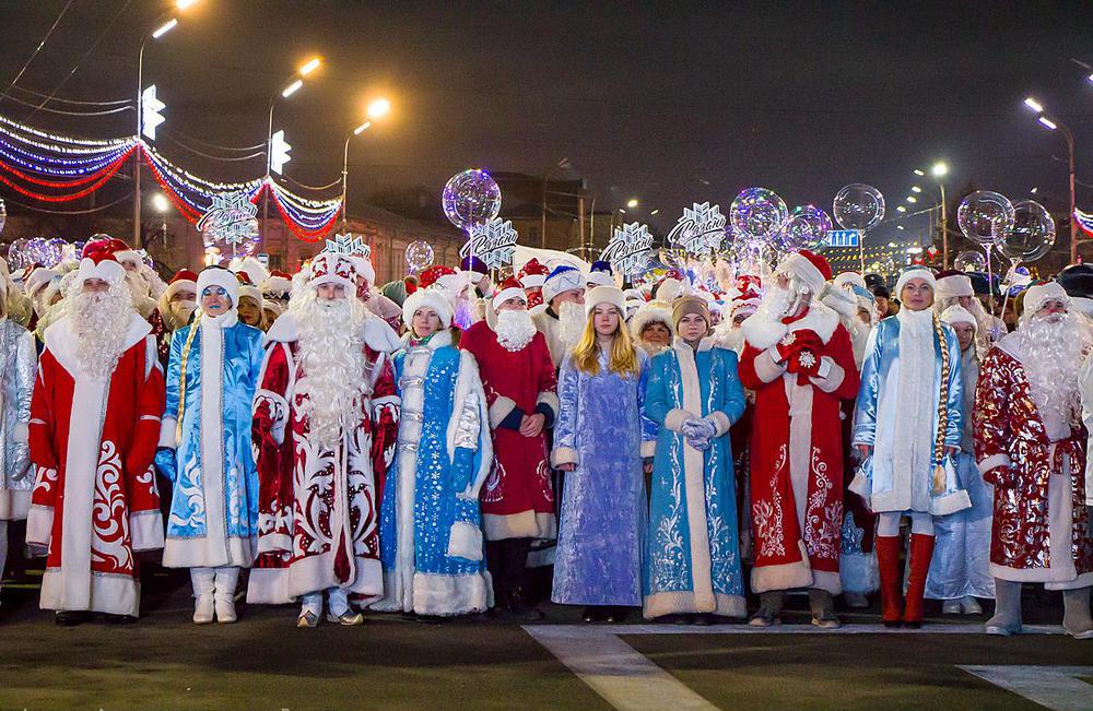 7 декабря сотрудники Дворца детского творчества Юлия Григорио и Юрий Рябов приняли участие в шествии Дедов Морозов и Снегурочек. Такое количество новогодних героев создало праздничное настроение у рязанцев.