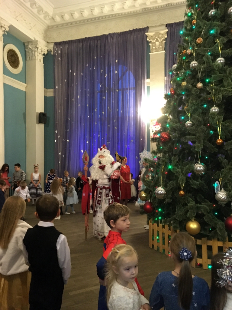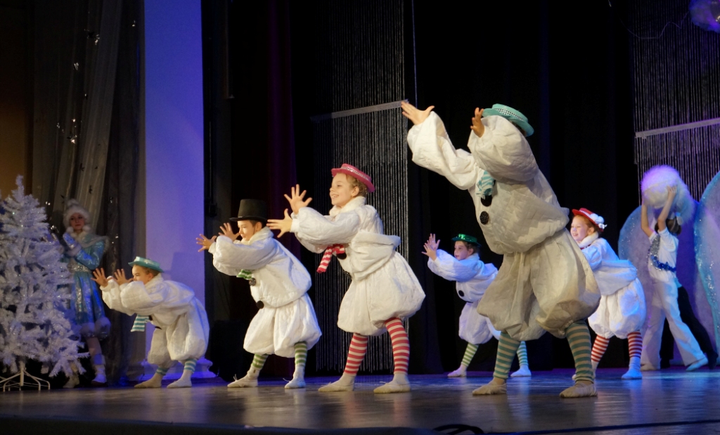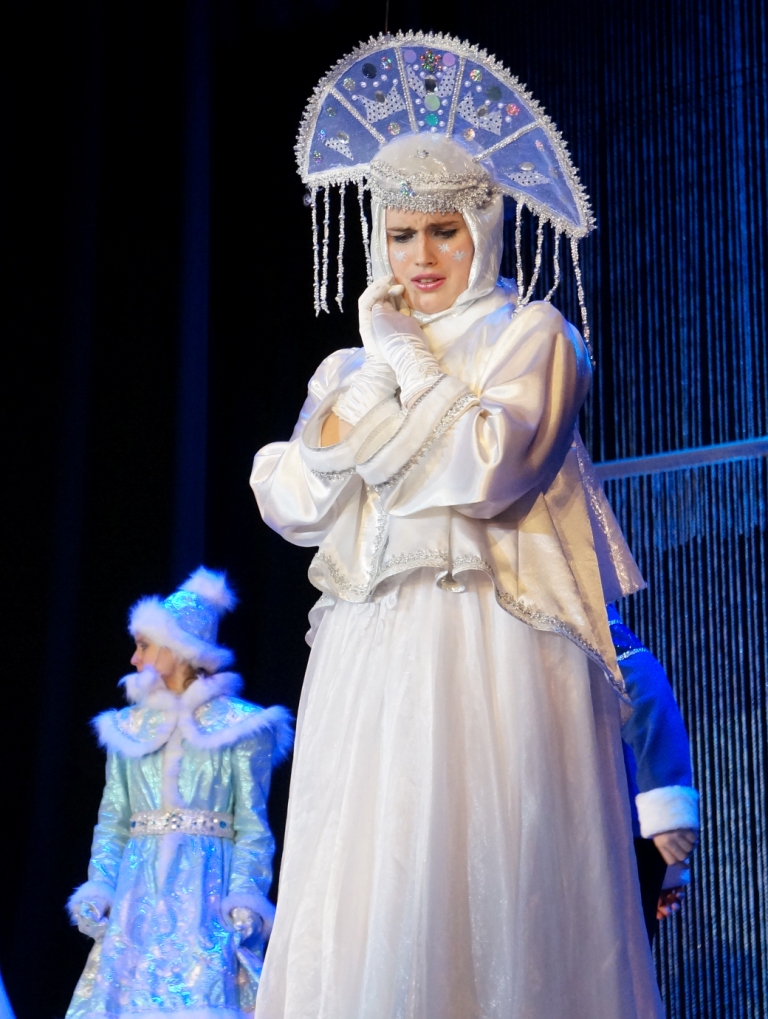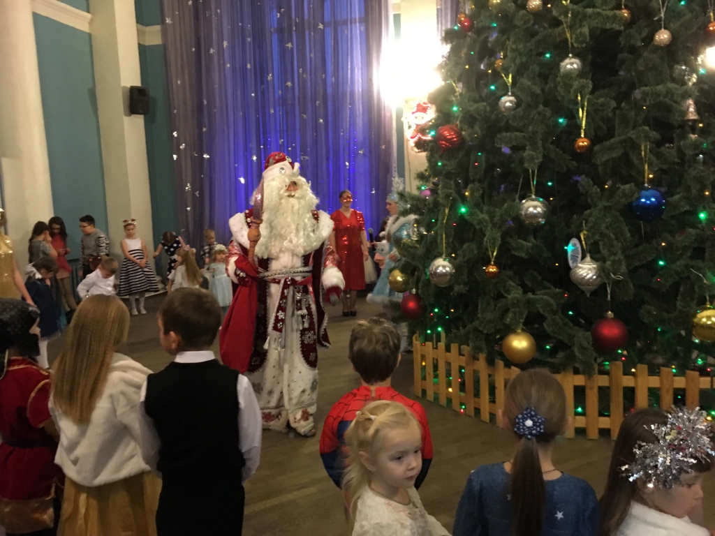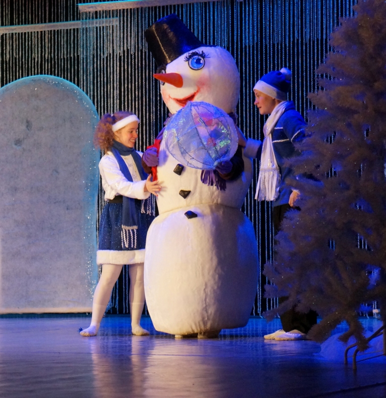 На улице всех гостей встречают ростовые куклы, в фойе фольклорные коллективы Дворца приветствуют зрителей русской задорной песней, педагоги прикладного творчества проводят мастер-классы для всех желающих, а скоморохи и сказочные персонажи увлекают участников веселыми играми и на новогоднем паровозике отправляют в сказочное путешествие. Дети попадают в волшебный мир сказки, где помогают Деду Морозу и Снегурочке вернуть новогодний снег, а завершается представление хороводом вокруг красавицы елочки.