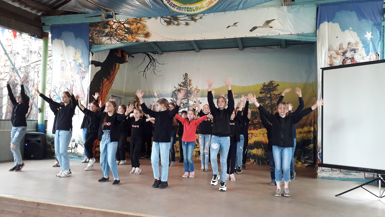 Весь день в лагере звучали песни о России и Рязани, дети участвовали в спортивных состязаниях «Смениада-2021», посетили киносеанс и, конечно, праздничную танцевальную программу.