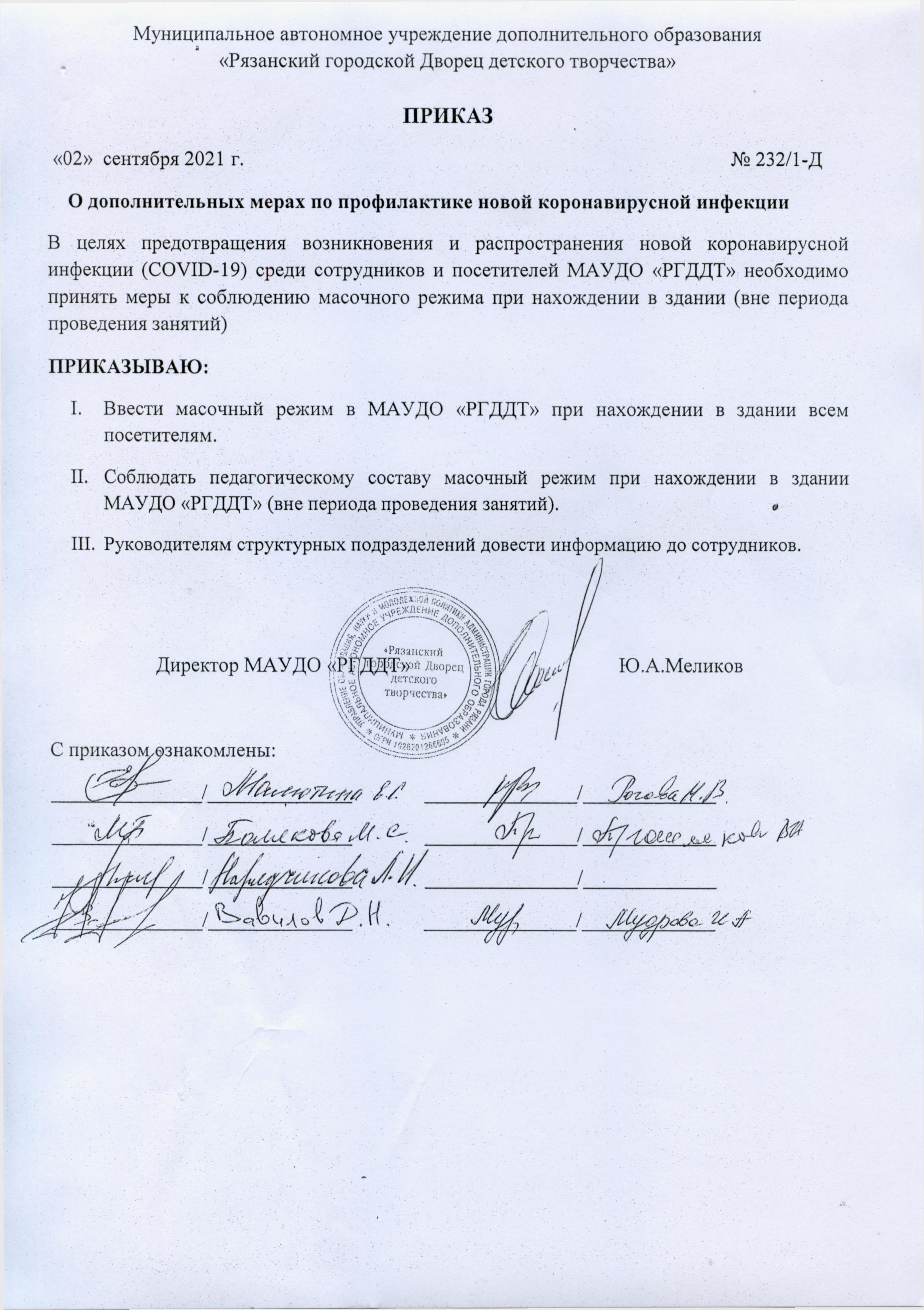 Приказ о дополнительных мерах профилактике новой коронавирусной инфекции