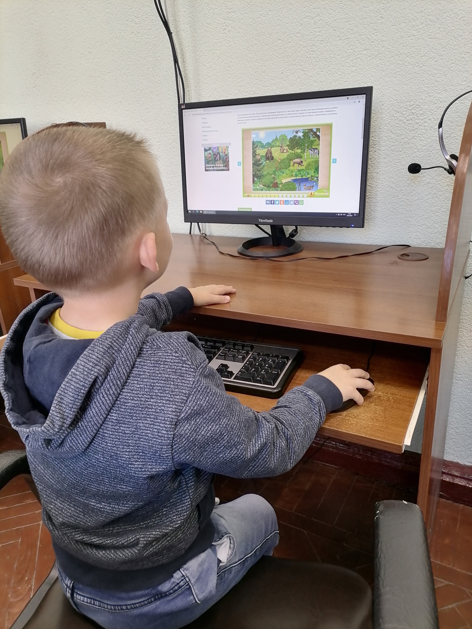 Ребята вместе с педагогом дополнительного образования Екатериной Анатольевной Королевой совершили виртуальную экскурсию в лес, разгадали лесные загадки и отыскали всех зверей в увлекательном тренажере "Звери в лесу".