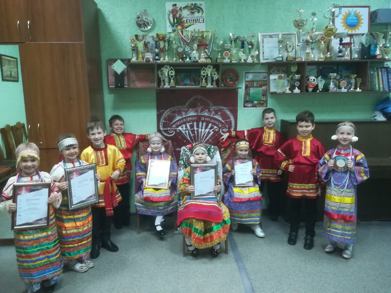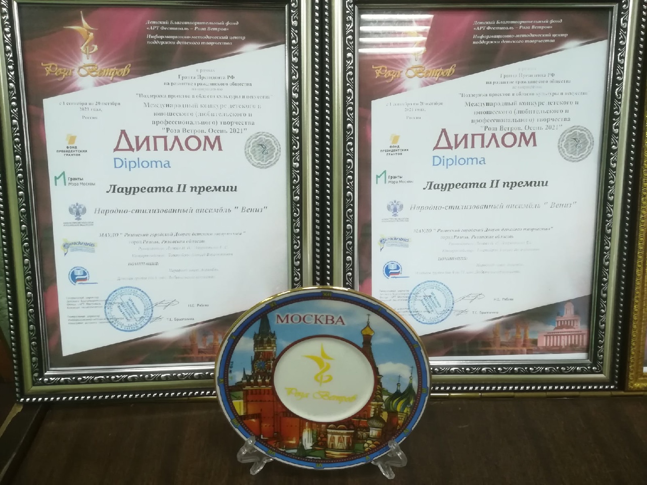 В Международном онлайн-конкурсе,, Роза ветров - Осень,,!!! Конкурс проводит Детский благотворительный фонд АРТ-Фестиваль - Роза ветров при поддержке Информационно-методического центра детского творчества. Министерства культуры РФ, Гранты Мэра Москвы, Фонда президентских грантов, Приоритетного национального проекта,, Образование,,. В номинации Любительское искусство. Народная песня. Возрастная категория до 8 лет, Младшая группа Народно-стилизованного ансамбля,, Вениз,, стала Лауреатом II премии.!!!!
