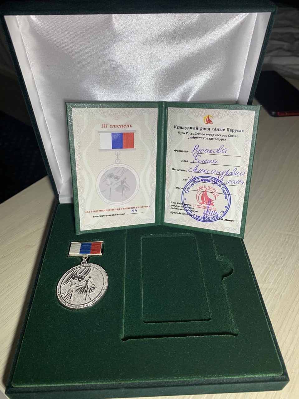 Результатом стал диплом Лауреата II степени. Помимо диплома лауреата, руководитель коллектива Русакова Елена Александровна награждена медалью III степени «За выдающийся вклад в развитие культуры».