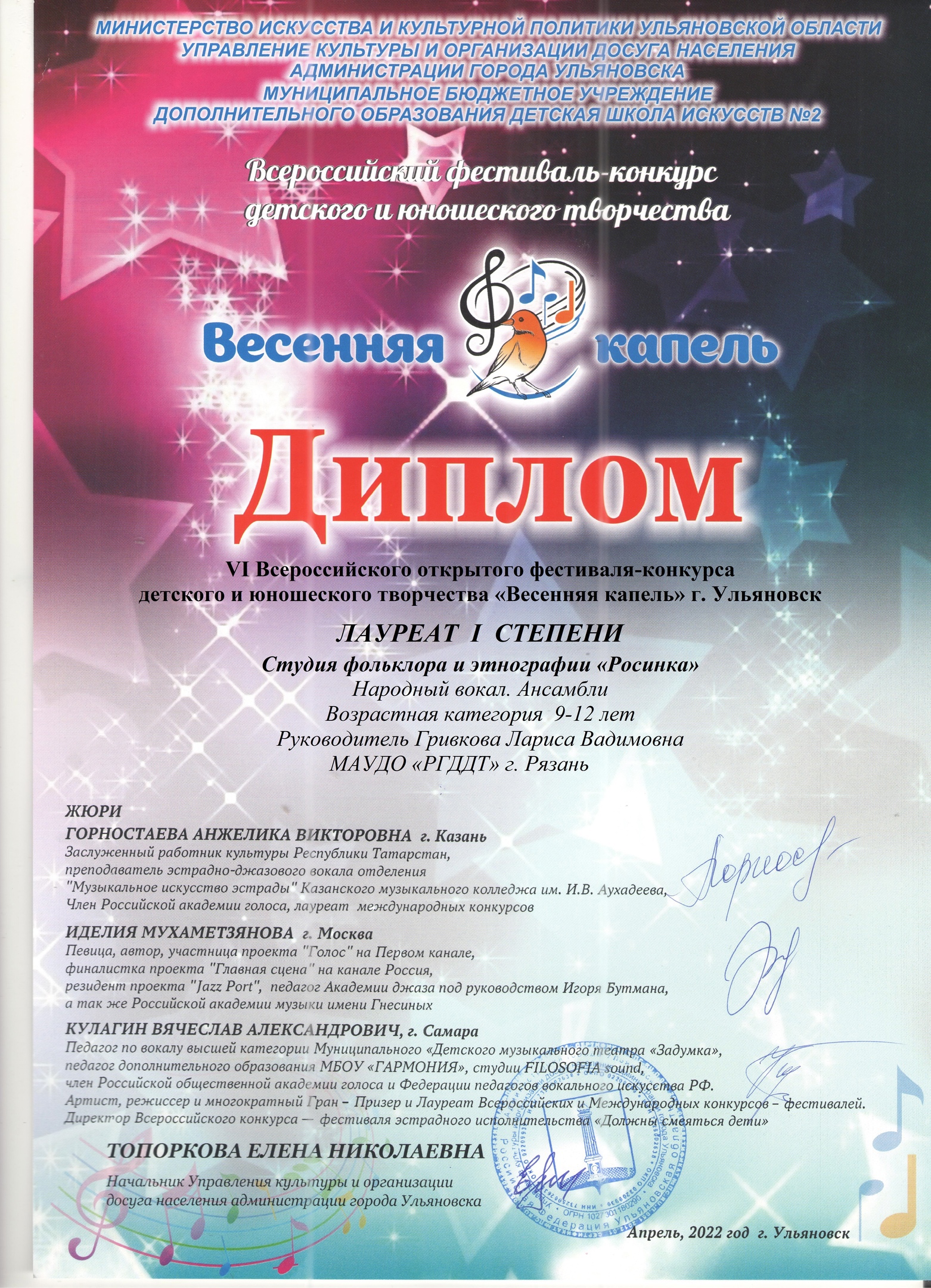 Студия фольклора и этнографии «Росинка» в апреле приняла участие в конкурсах вошедших в перечень мероприятий Министерства просвещения РФ.