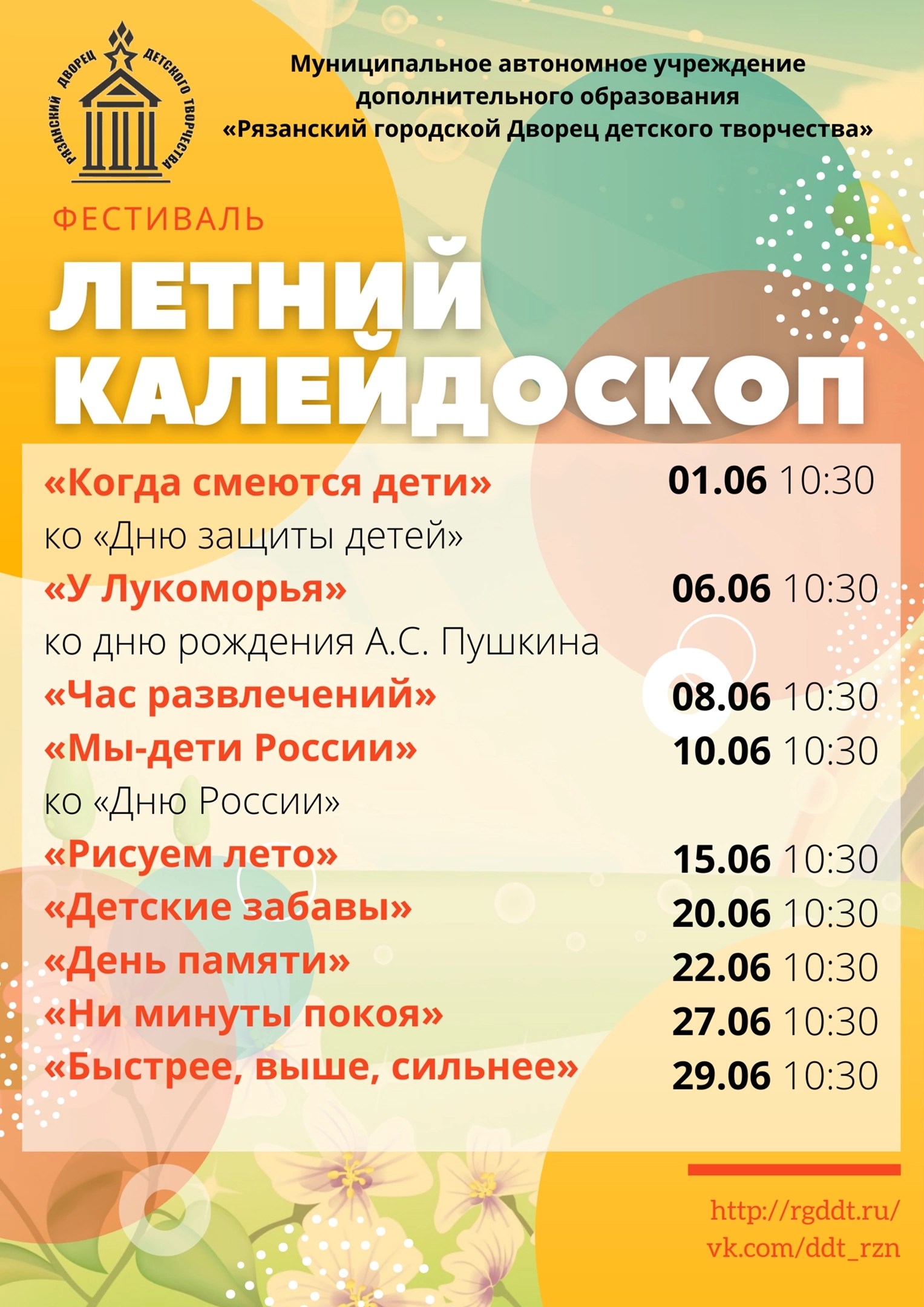 Летний калейдоскоп расписание