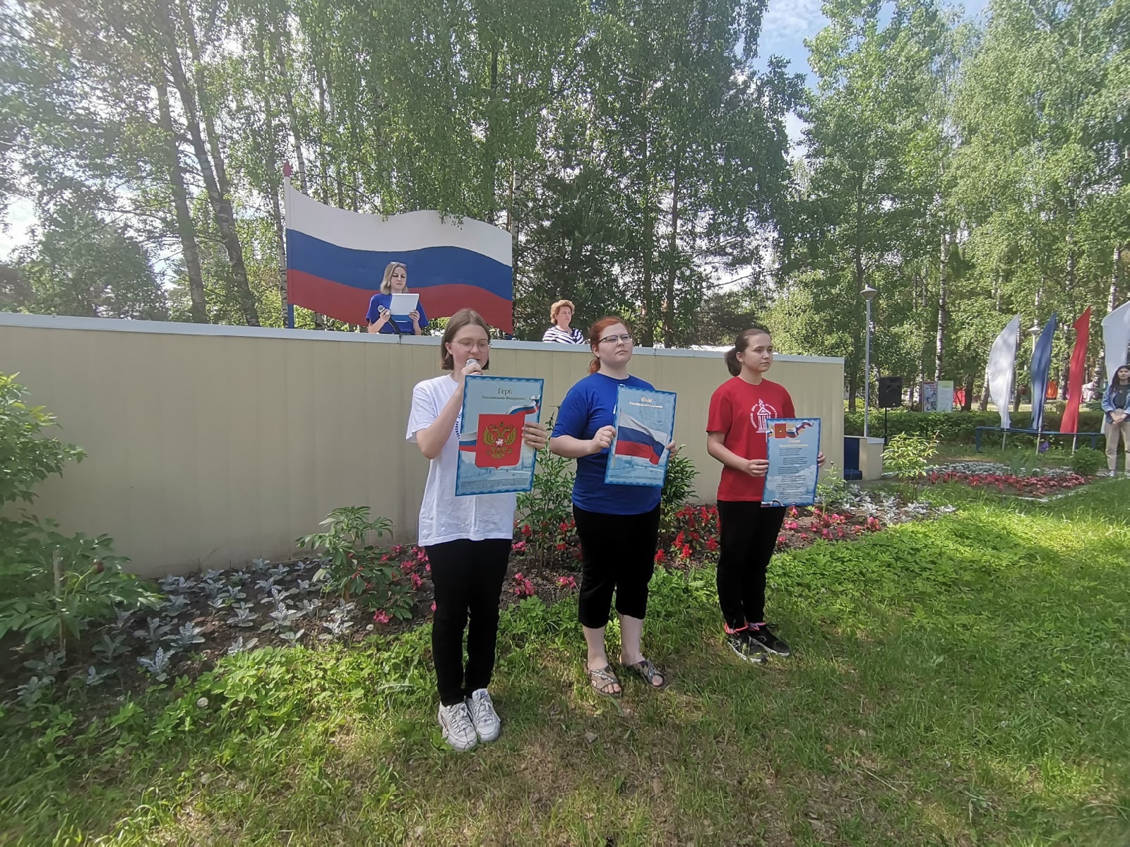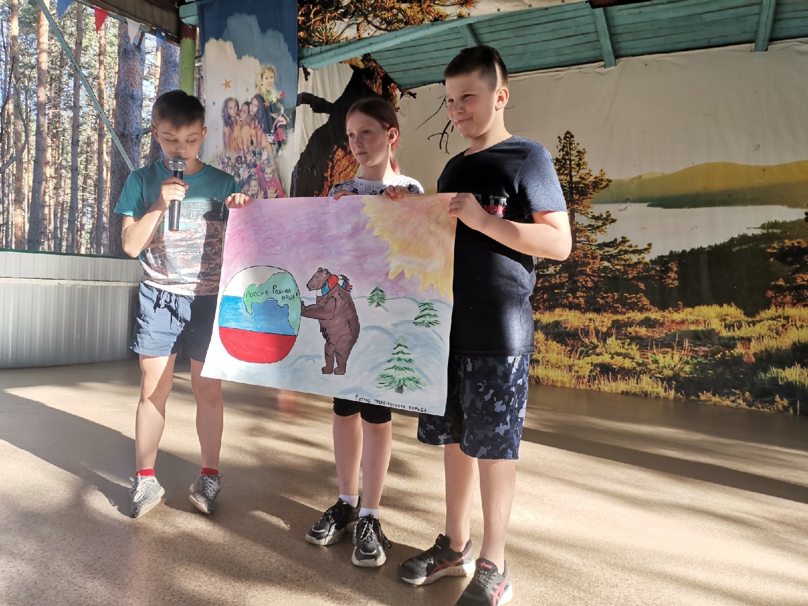 День России в лагере "Смена" открылся торжественной линейкой, на которой был поднят флаг Российской Федерации и исполнен гимн. Чтецы КСДП "Лидер" исполнили стихи о символах России, специально для праздника отряд ансамбля танца "Импульс" подготовил композицию "Аист - на крыше, мир - на земле". Весь лагерь провозгласил троекратное ура нашей любимой стране! В программу праздничных дней также вошли конкурс рисунка на асфальте, выставка плакатов “Моя Россия", викторина "Душа всей России - Рязань", футбольные матчи, кросс и, конечно,"Танцы в русском стиле"!