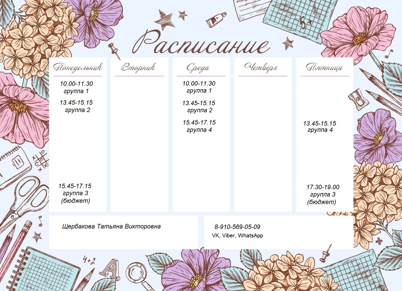 Группа 1 - ПН, СР - 10.00-11.30