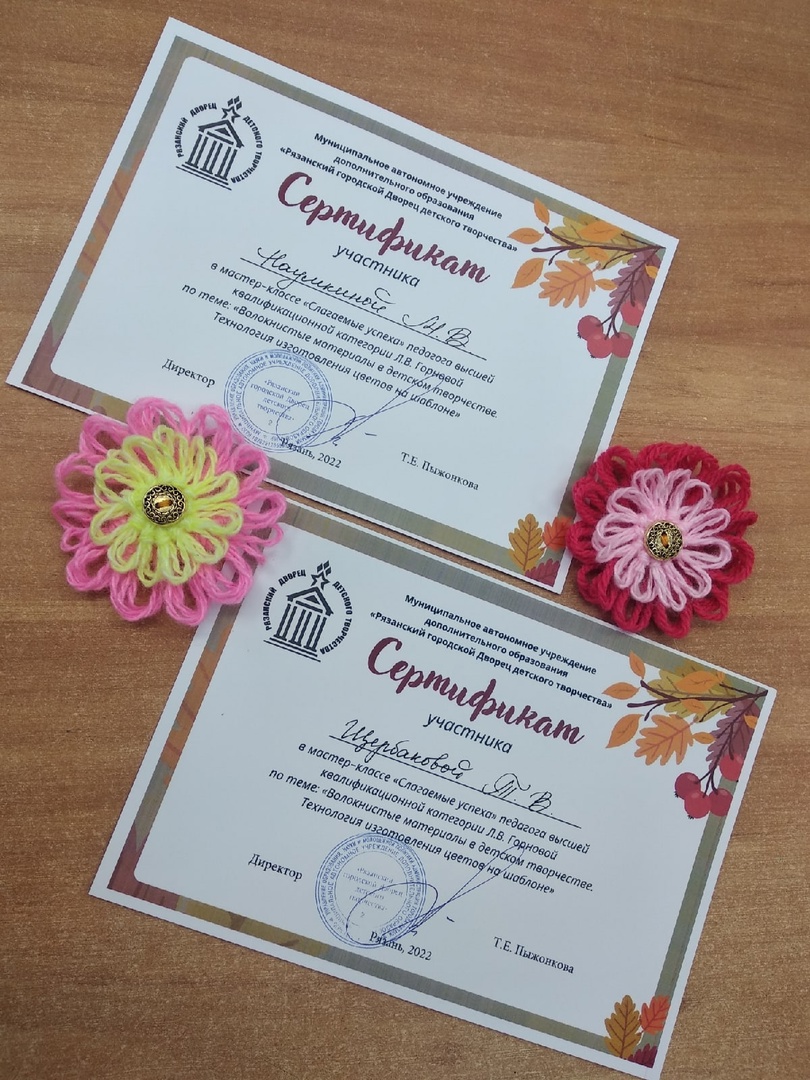 28 сентября в МАУДО "РГДДТ" педагог дополнительного образования высшей квалификационной категории Лада Владимировна Горнова провела мастер-класс «Слагаемые успеха» по теме "Волокнистые материалы в детском творчестве. Технология изготовления цветов на шаблоне".