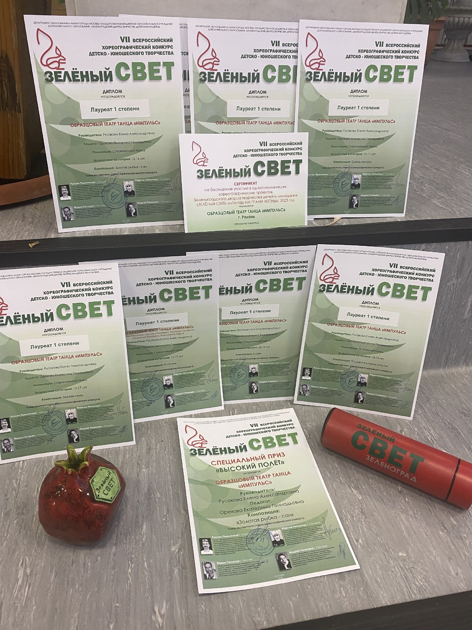 Лауреат 1 степени в номинации «Современный танец» 12-14 лет (композиция «Слухи»), Лауреат 1 степени в номинации «Эстрадный танец» 12-14 лет (композиция «По дороге в город счастья»), Лауреат 1 степени в номинации «Современный танец» 15-17 лет (композиция «Золотая рыбка - сан»), Лауреат 1 степени в номинации «Современный танец» 15-17лет (композиция «Веревки вить»), Лауреат 1 степени в номинации «Современный танец» 15-17 лет (композиция «Источник»), Лауреат 1 степени в номинации «Современный танец» 15-17 лет (композиция «Сквозь призму»), Лауреат 1 степени в номинации «Народно-стилизованный танец» 15-17 лет (композиция «Одинаково разные»), Лауреат 2 степени в номинации «Эстрадный танец» 9-11 лет (композиция «Дети ветра»). Образцовый театр танца «Импульс» удостоен СПЕЦИАЛЬНОГО ПРИЗА «ВЫСОКИЙ ПОЛЕТ» за номер «Золотая рыбка – сан» и получил СЕРТИФИКАТ на бесплатное участие в хореографических проектах в 2023 году.