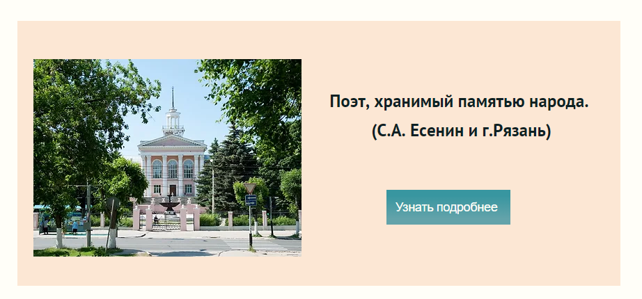 Краеведческий маршрут «Поэт, хранимый памятью народа» знакомит участников с историческими местами Рязани, которые связаны с именем нашего знаменитого поэта Сергея Александровича Есенина. Одним из пунктов двухдневной программы является посещение «Музея детской рукописной книги», многие экспонаты и экспозиции которого посвящены творчеству С.А. Есенина и активизируют интерес к изучению истории родного края и жизненного пути его славных земляков. Знакомство с рукописными книгами музея вдохновляет детей на создание собственных творческих работ, что посетители и делают в рамках маршрута на мастер-классе «Создай книжку-малышку».
