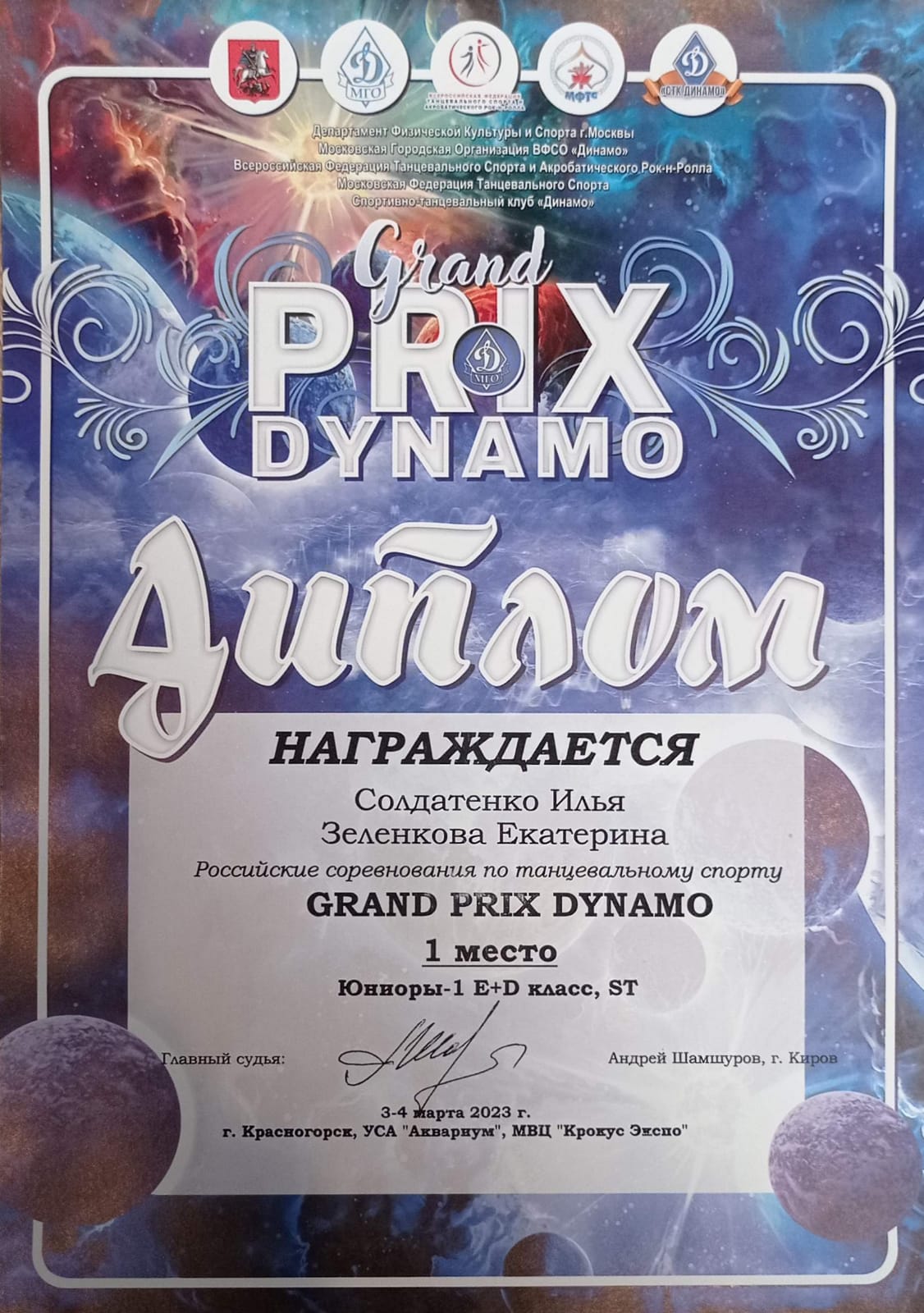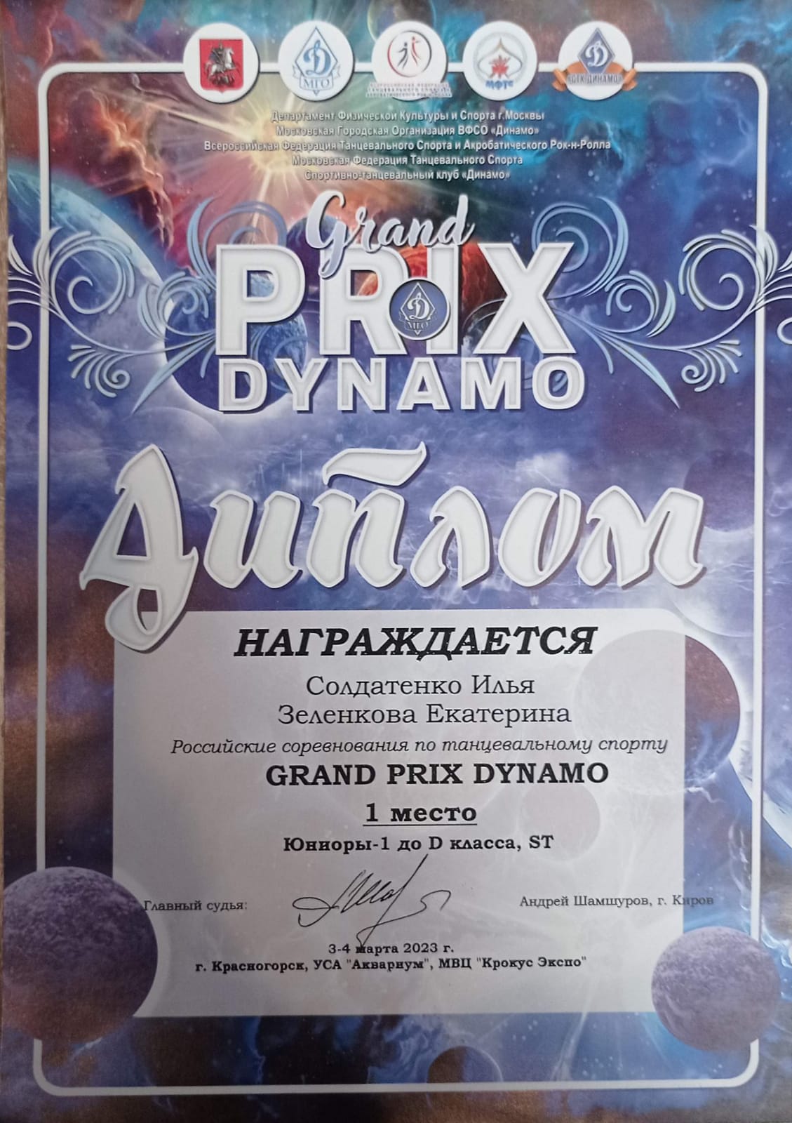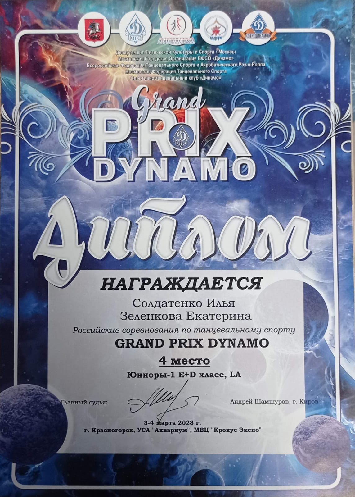 3-5 марта 2023 года в городе Красногорске Московской области состоялся один из самых масштабных российских турниров по танцевальному спорту «БОЛЬШОЙ ПРИЗ ДИНАМО -2023».