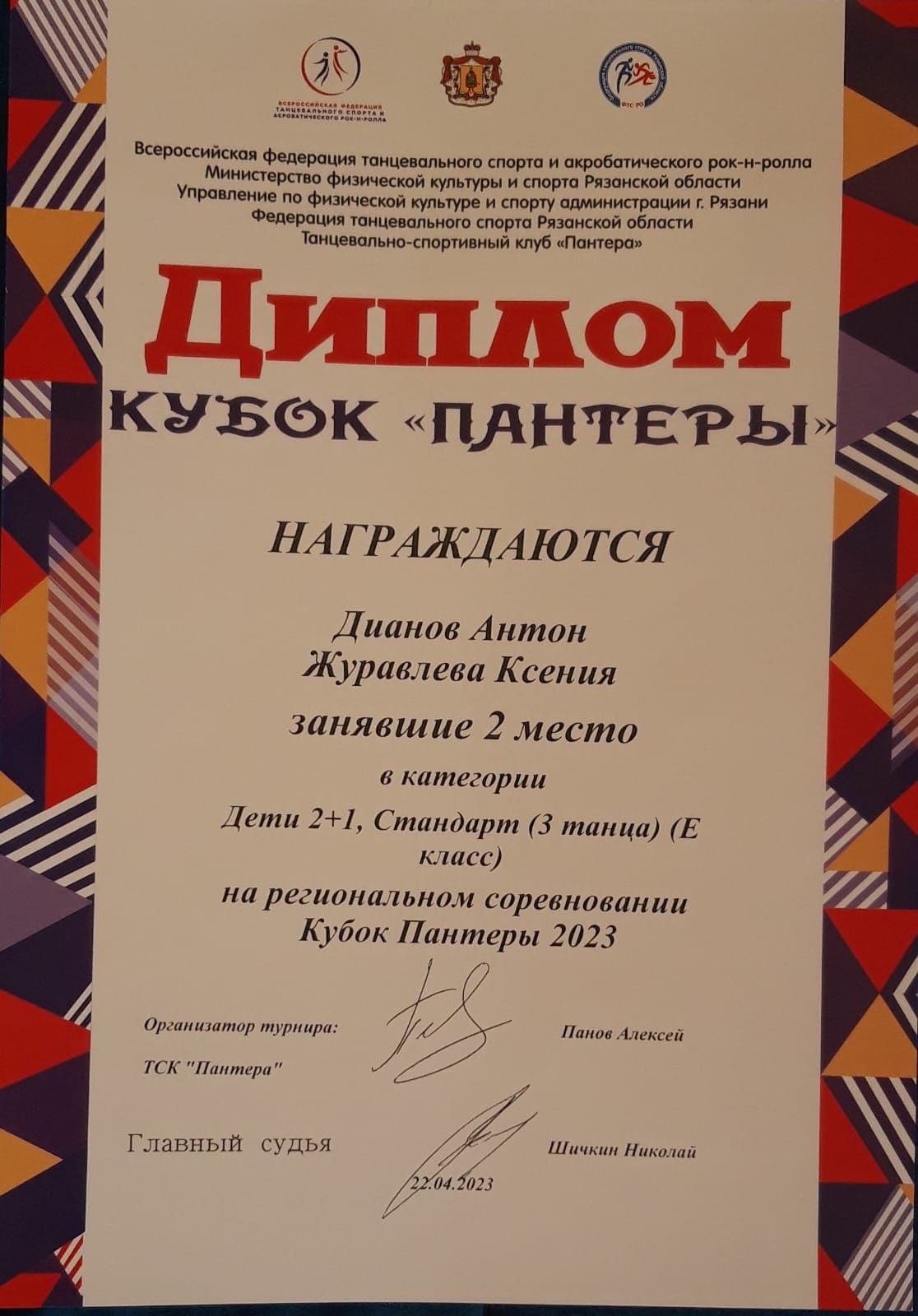 22 апреля 2023 года учащиеся танцевально-спортивного клуба «Солнечные ритмы» (педагоги Турчанов И.Г., Шматов А.И.) Рязанского городского Дворца детского творчества приняли участие в турнире по танцевальному спорту «Кубок Пантеры 2023. Первенства города Рязани. Официальные соревнования Рязанской области».