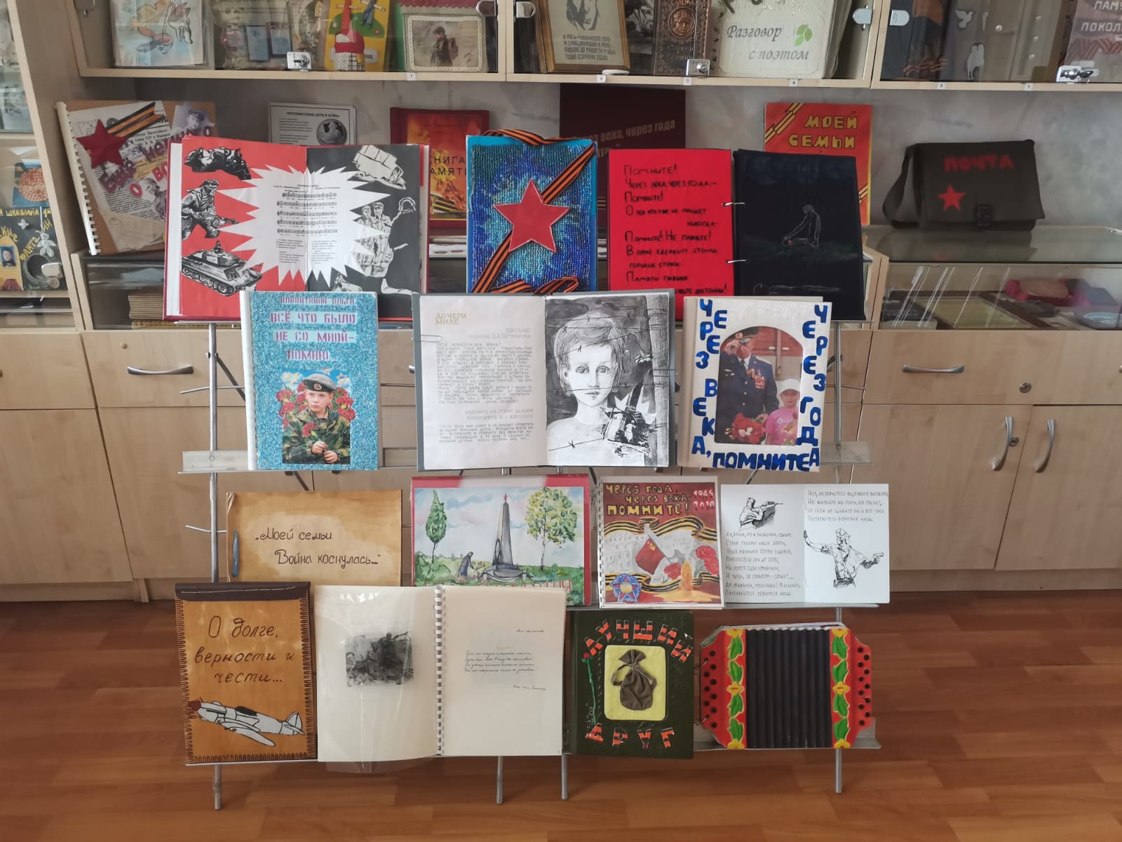 Так же в Музее детской рукописной книги Дворца детского творчества проходят экскурсии на тему: «Мы помним, мы гордимся!». Грендо Маргарита Вячеславовна знакомит детей с выставкой книг, посвященной Великой Отечественной войне. Книги созданы руками участников конкурса-фестиваля «Начало» разных лет. Благодаря такой замечательной коллекции рукописных книг ежегодно во Дворце детского творчества проходит цикл экскурсий, где можно увидеть эти удивительные детские творения и восхититься мастерством юных книголюбов.