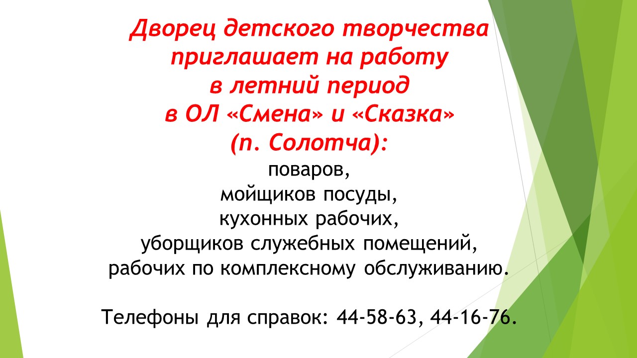 Дворец детского творчества приглашает на работу в летний период