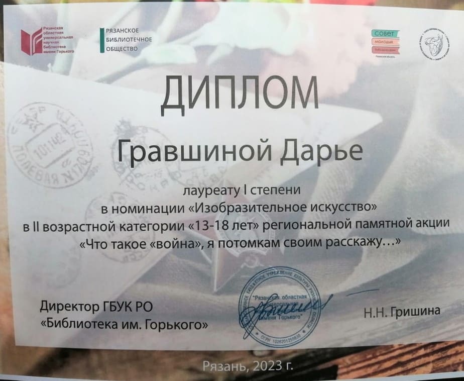 По итогам акции воспитанница объединения «Английский клуб» (педагог Никулина Елена Николаевна) Гравшина Дарья стала лауреатом I степени