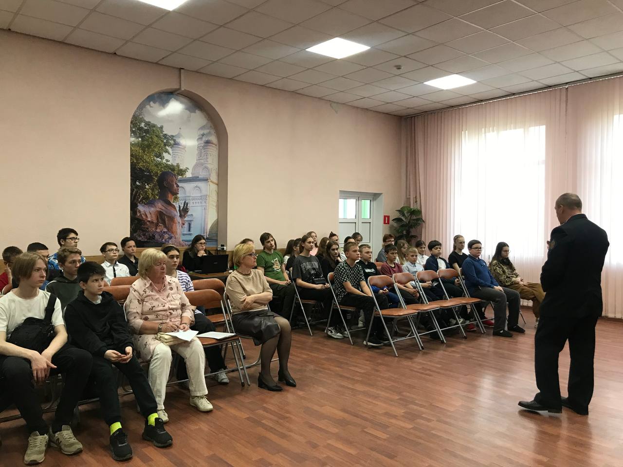 17 мая в Рязанском городском Дворце детского творчество прошла встреча с членом рабочей группы по профилактике экстремизма, первым вице-президентом Ассоциации Группы «Вымпел», полковником запаса – Владимиром Константиновичем Силантьевым.