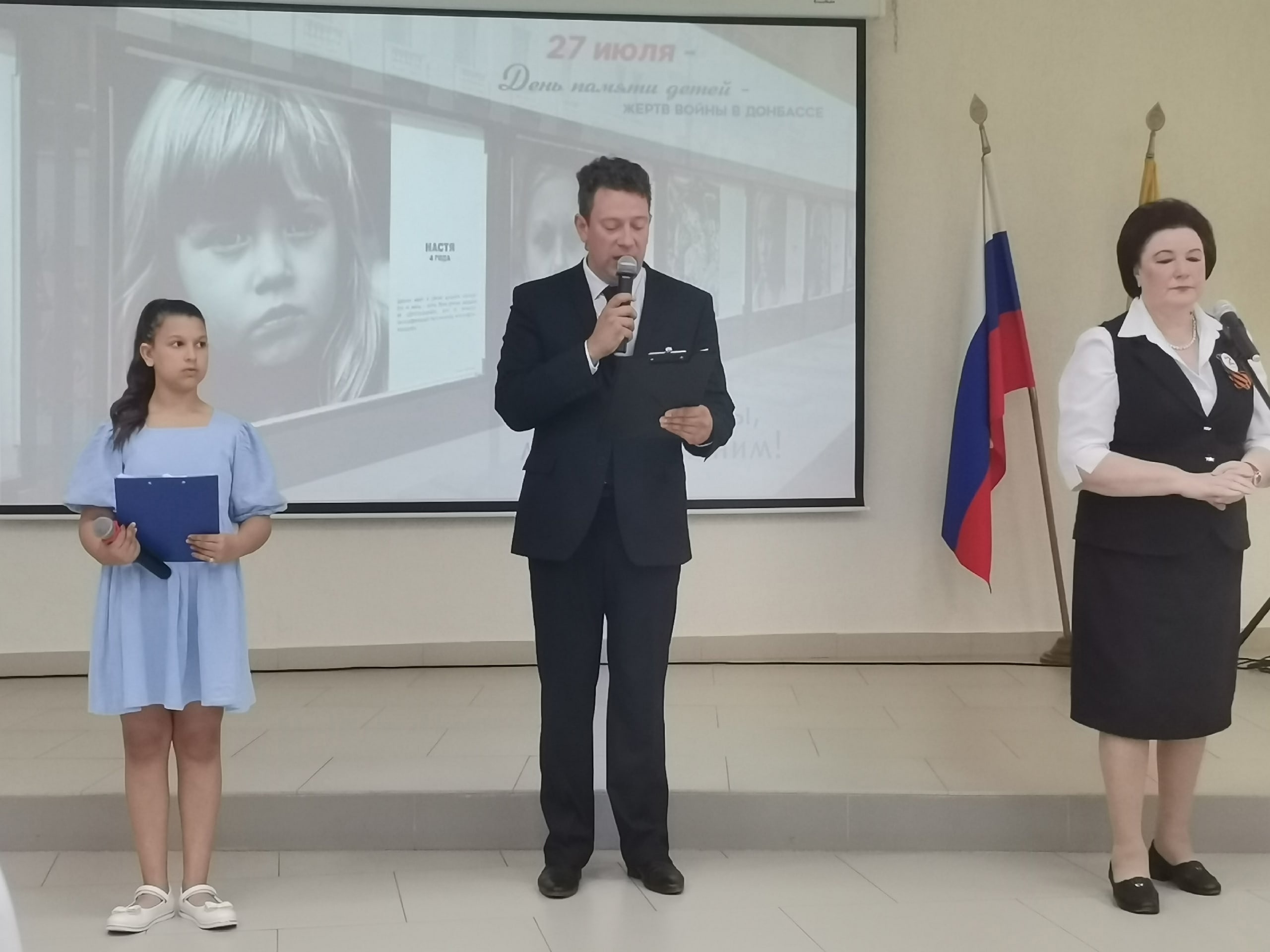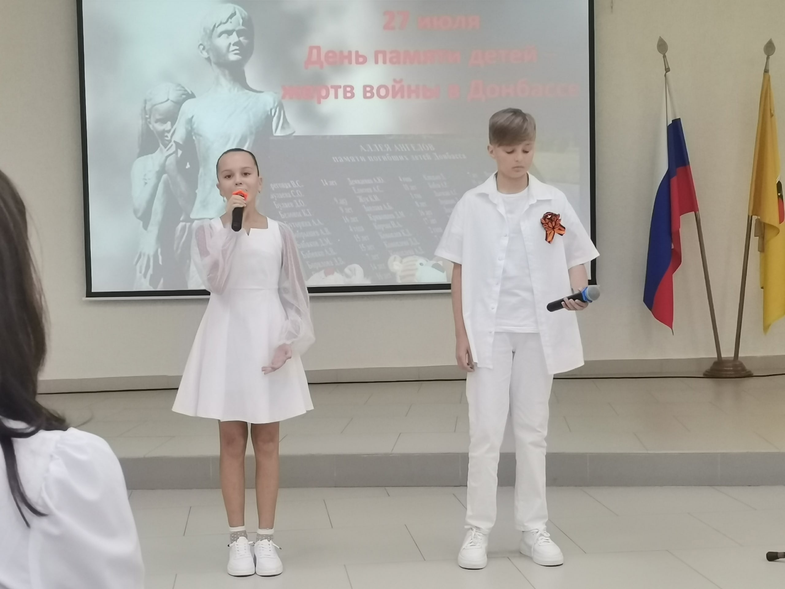 27 июля в нашей стране отмечается скорбная дата - День памяти детей - жертв войны на Донбассе. В Центральной городской библиотеке имени С. А. Есенина прошёл митинг-концерт, который посетили воспитанники ОЛ "Смена" из отряда "Своя компания". В стихах и песнях, в выступлениях взрослых и детей звучали слова скорби и печали по "маленьким ангелам", погибшим от рук нацистов. Все присутствующие почтили минутой молчания память безвинно и безвременно ушедших детей Донбасса. Ради этой памяти надо сделать все возможное для победы, ведь "должны смеяться дети и в мирном мире жить", как спели в финале юные артисты - участники мероприятия.