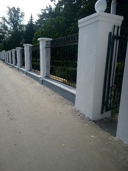 Комиссия отметила хорошее качество проведенных работ, установку новых оголовок на колоннах, замену шлагбаумов воротами, защиту цокольной части бетонными плитами.