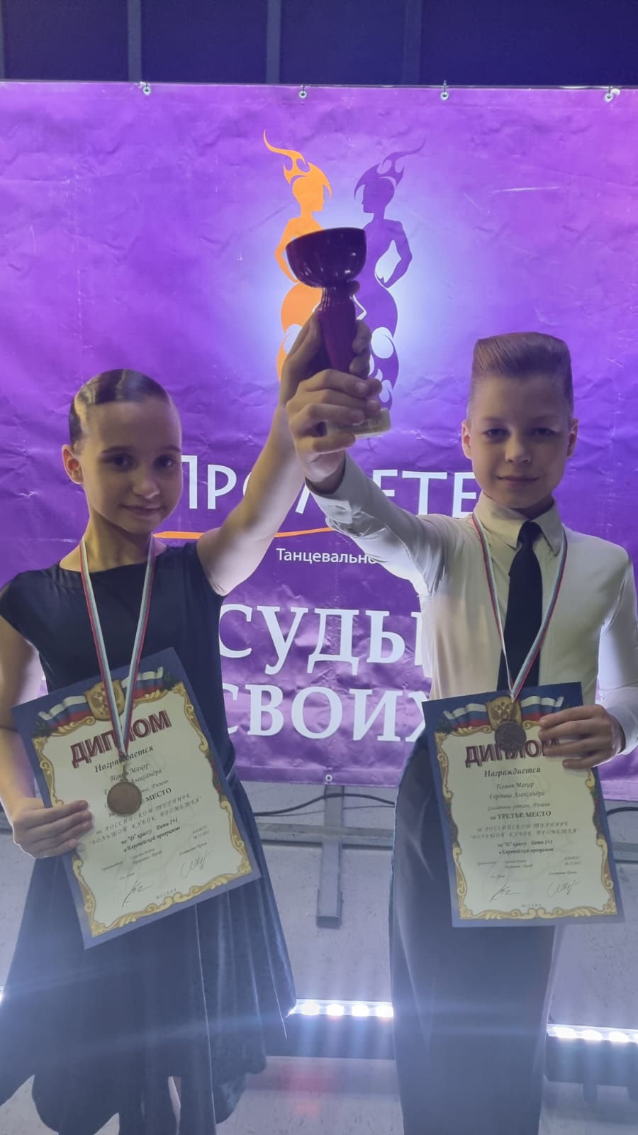 Ребятам вручили диплом за 3 место по «D» классу Дети 2+1 в Европейской программе.