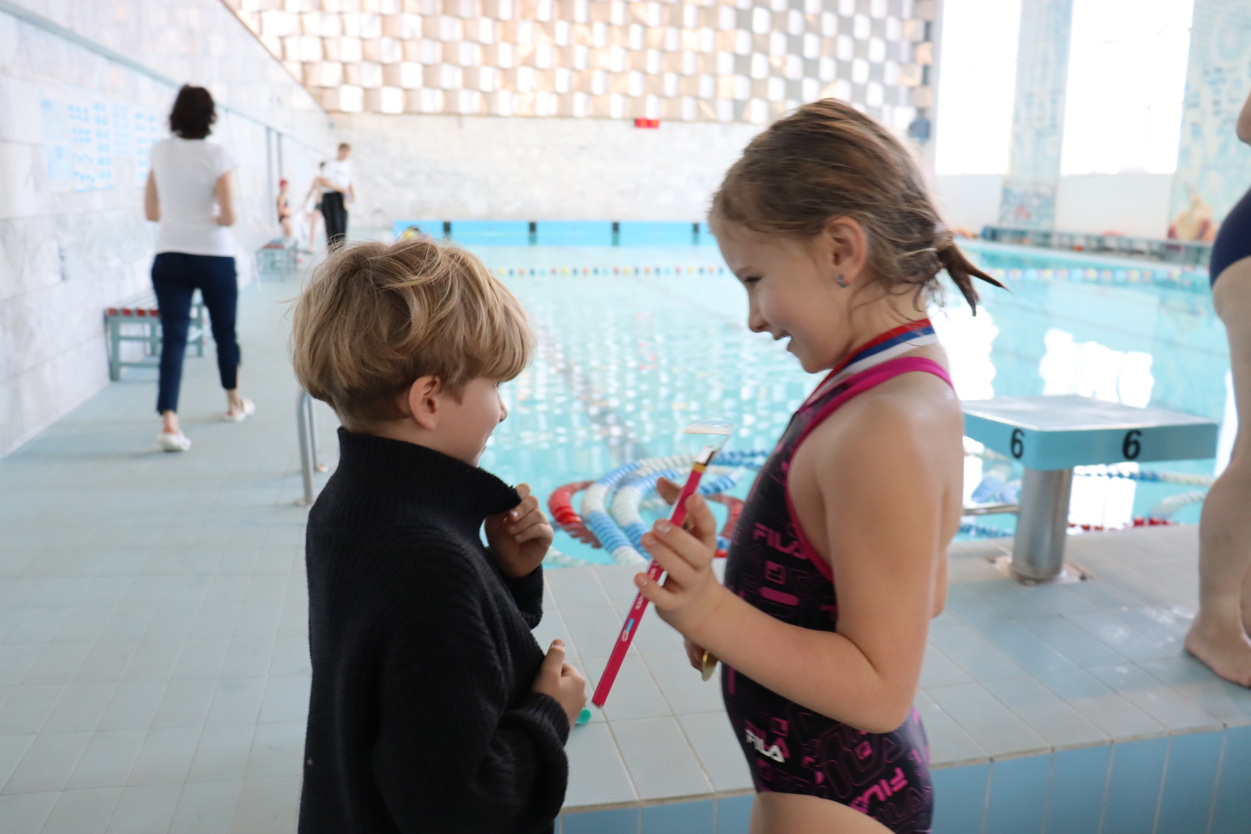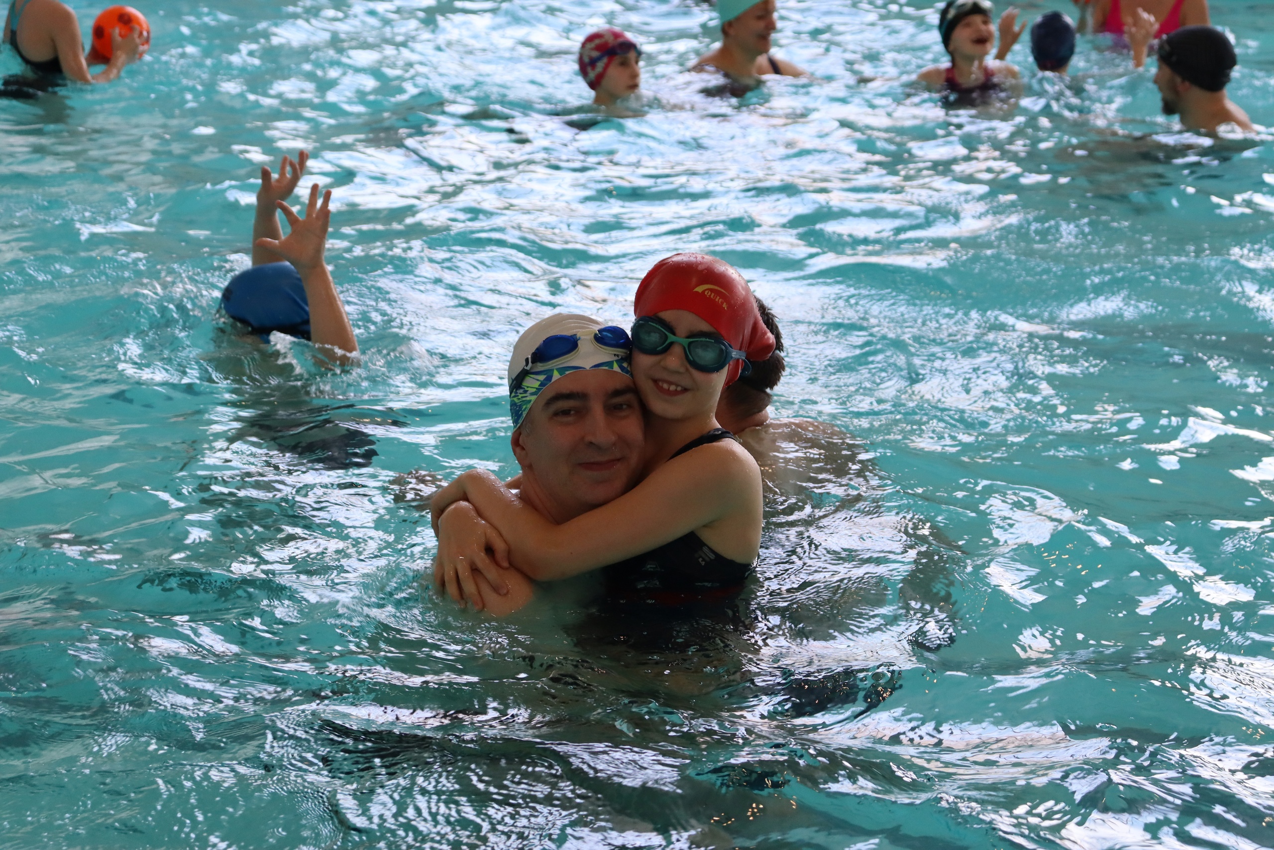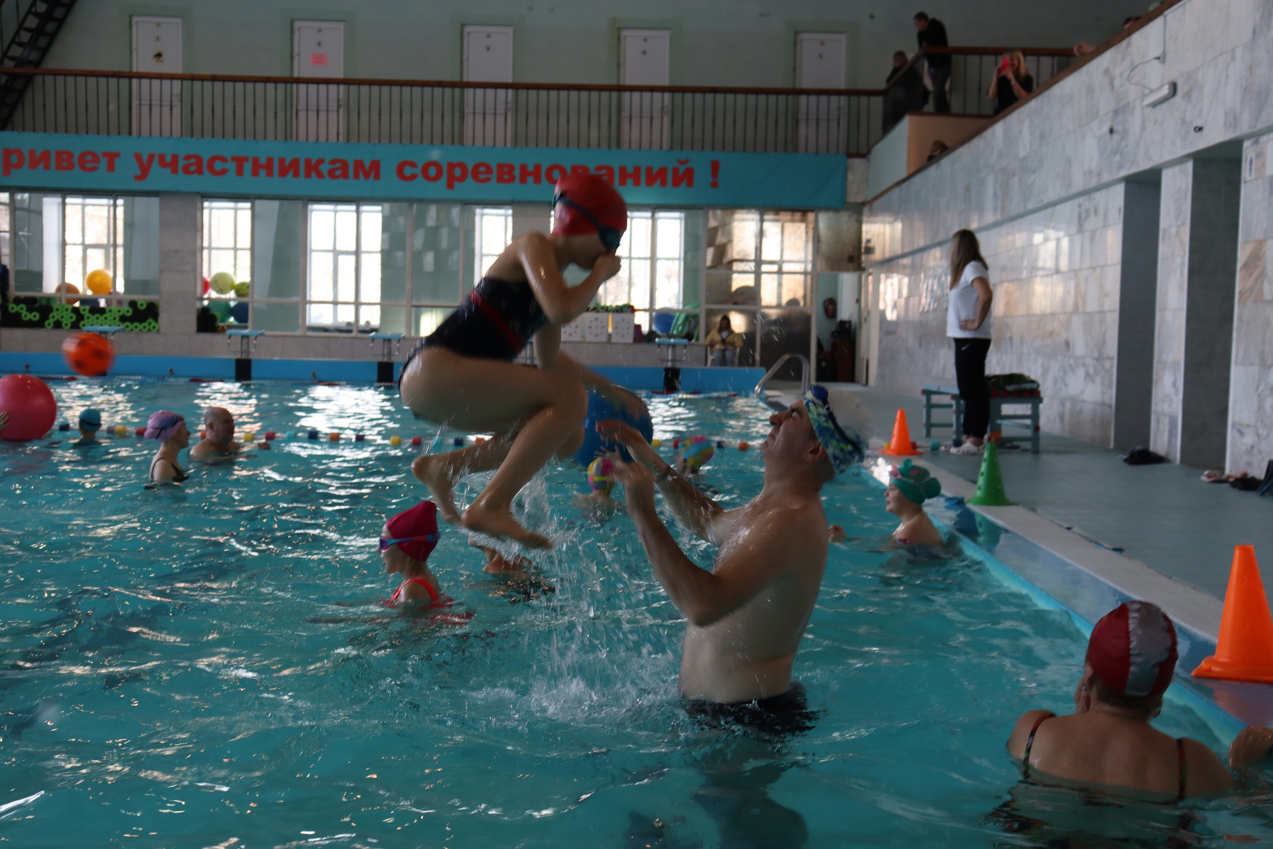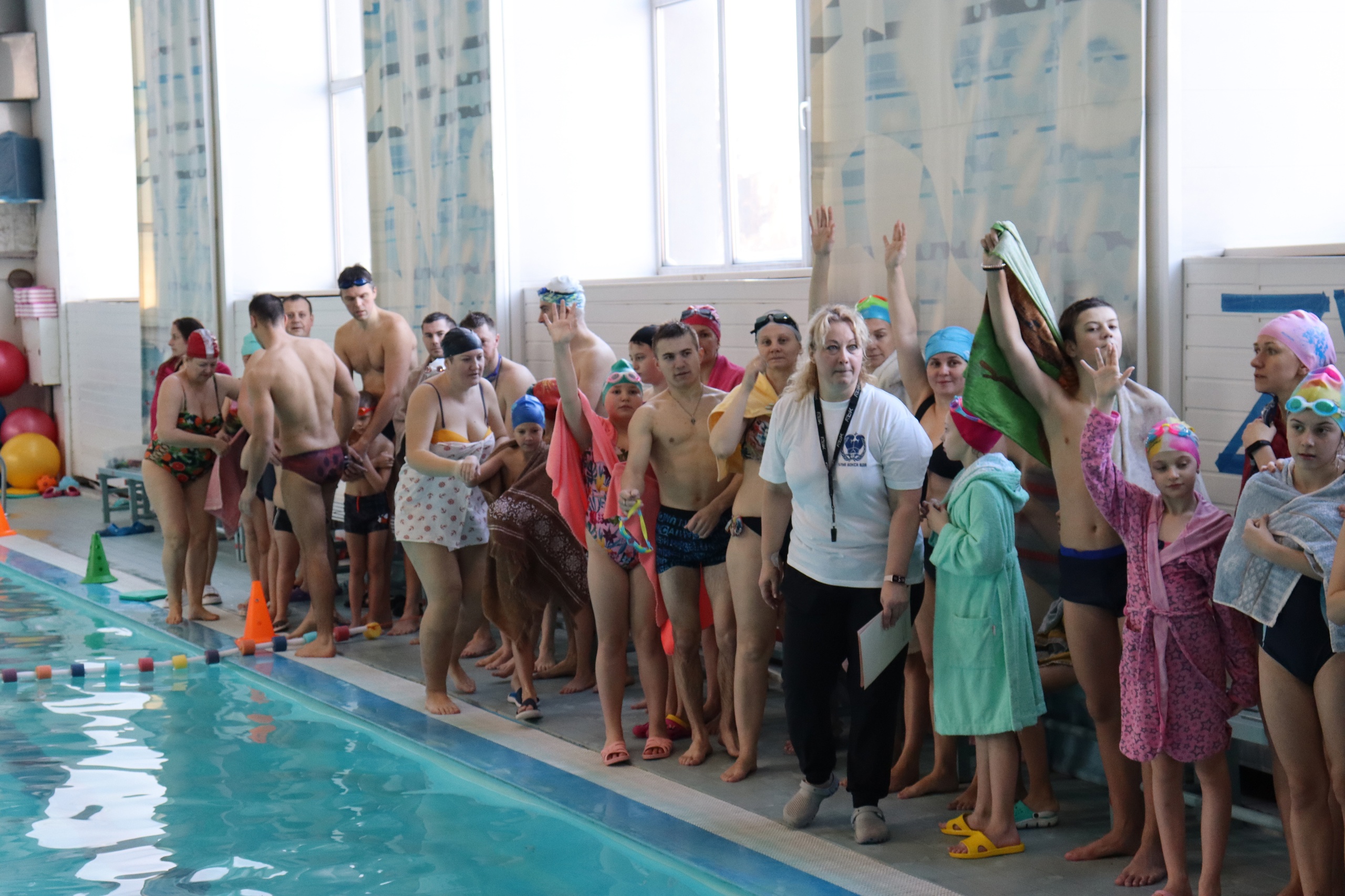 В бассейне МАУДО «РГДДТ» 24 семьи участвовали в трёх больших сплоченных командах! Дети соревновались в водных эстафетах вместе с родителями, бабушками и старшими братьями.