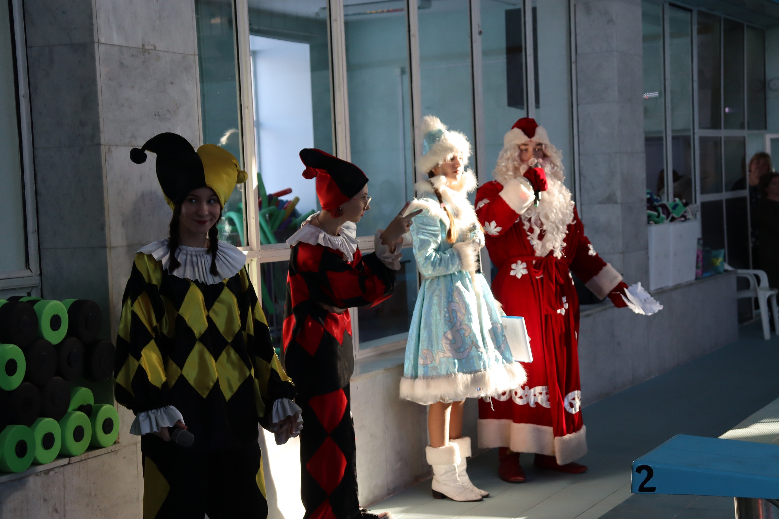 Участников и зрителей поздравила заместитель директора по организационно-массовой работе и детскому отдыху Кузнецова Татьяна Борисовна вместе с Дедом Морозом со Снегурочкой.