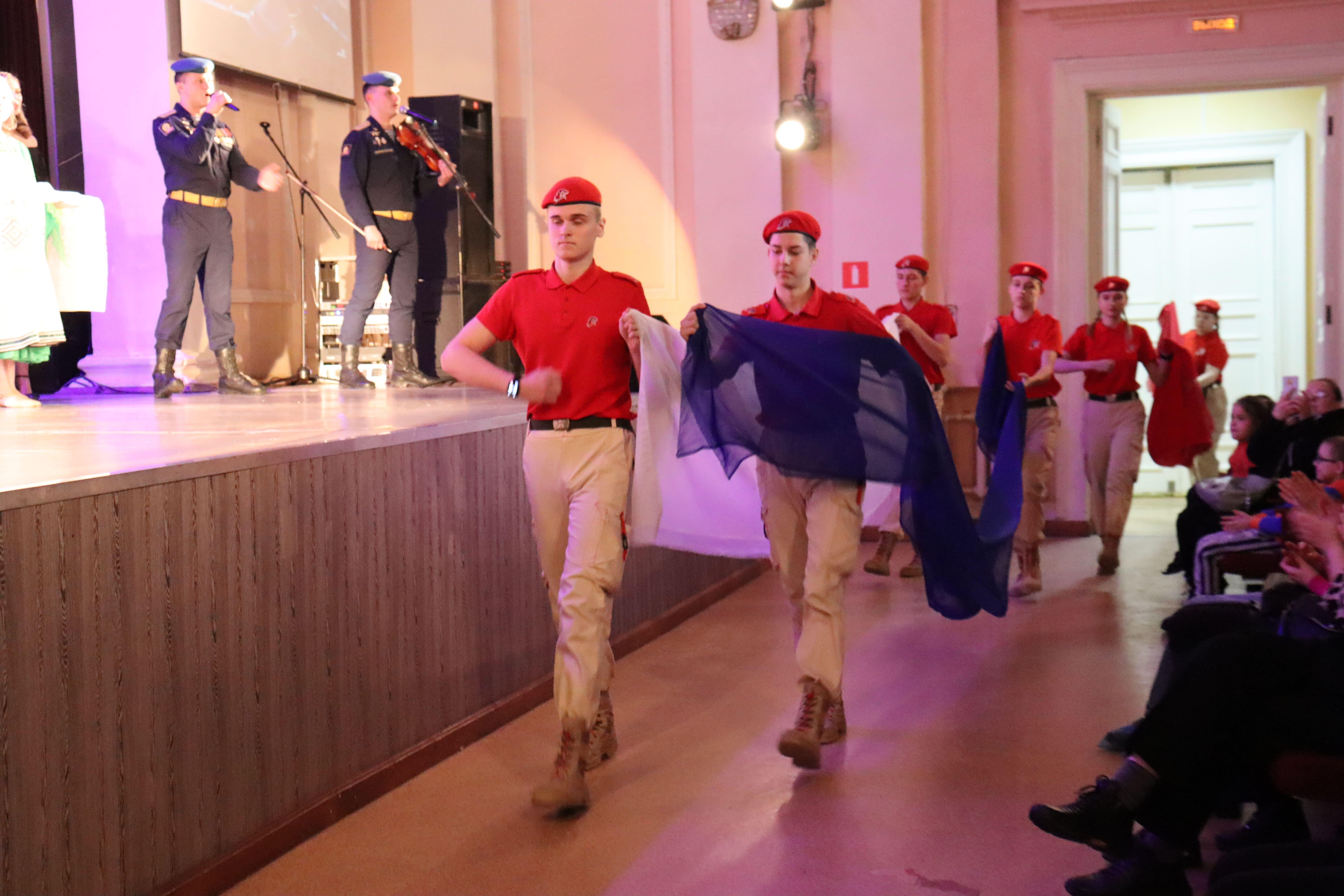 Артисты вместе с залом спели песни «Родина-мать зовет», «Служить России», «Никто, кроме нас».
