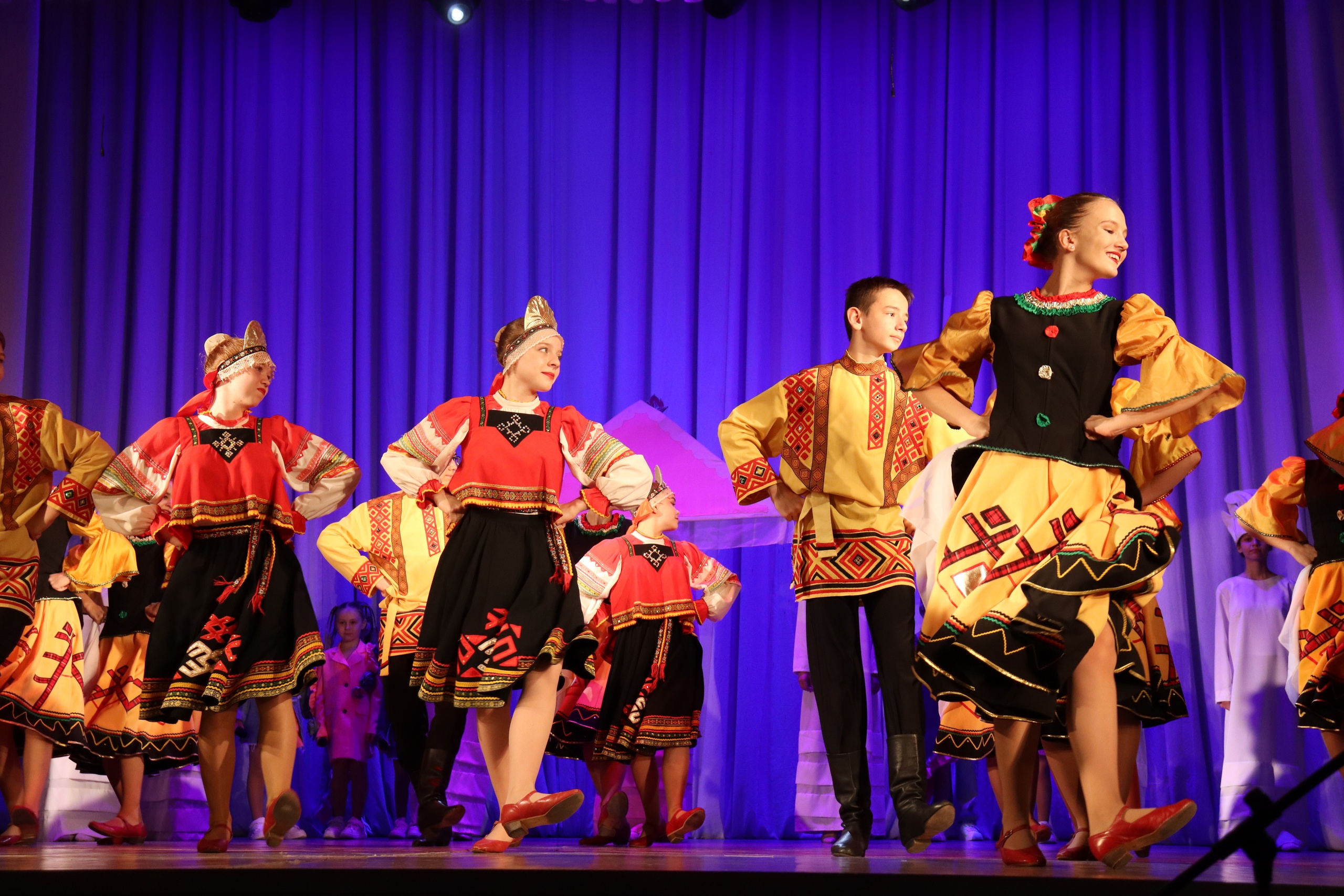 На сцене в зрительном зале дети и родители посмотрели праздничное представление, насыщенное яркими номерами.