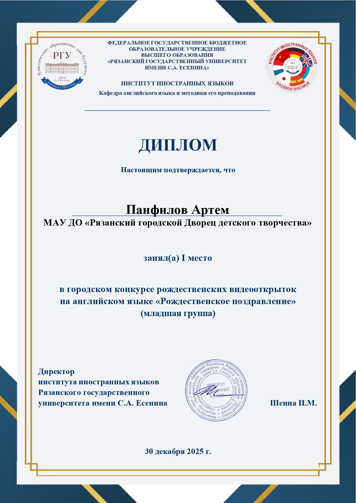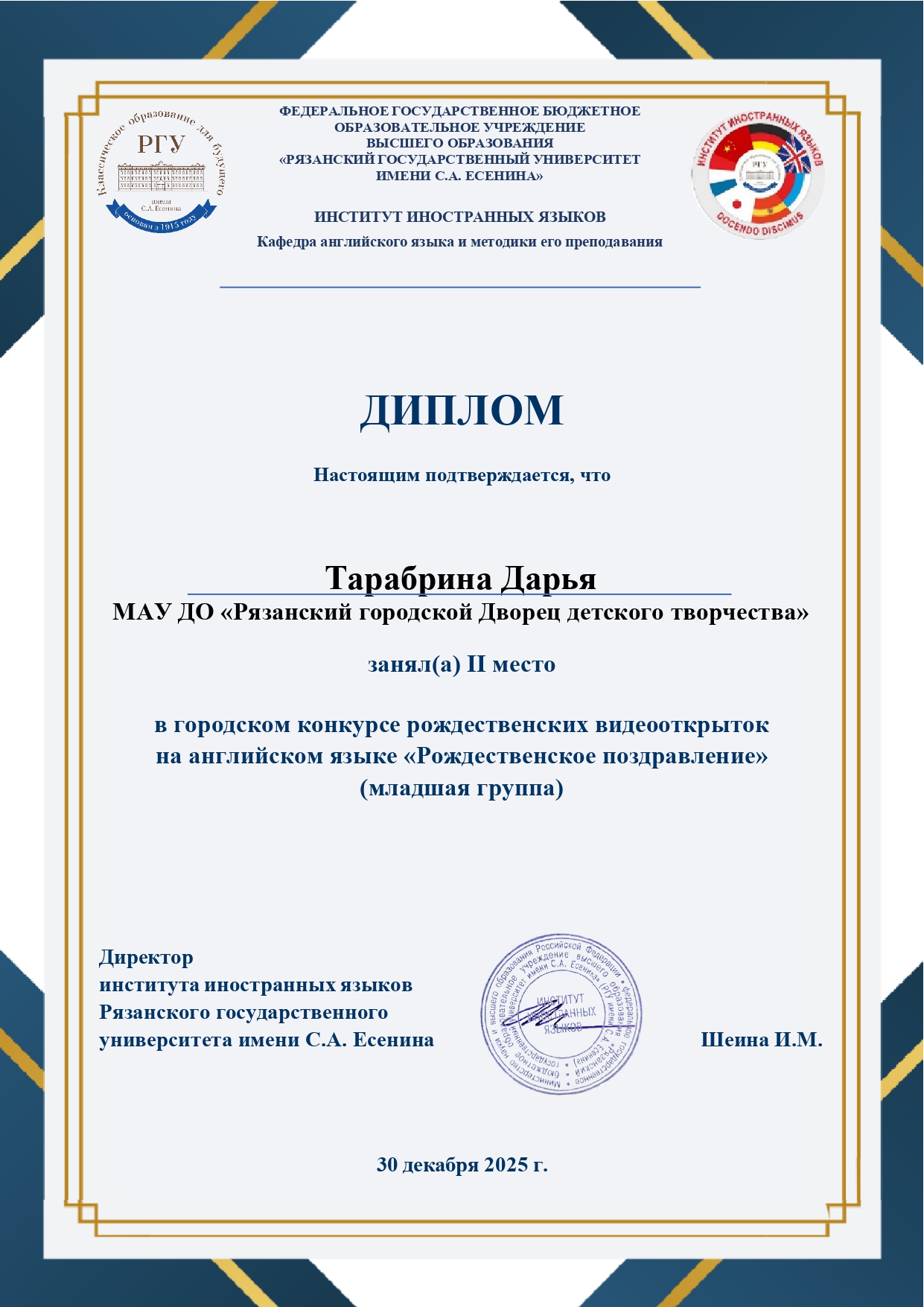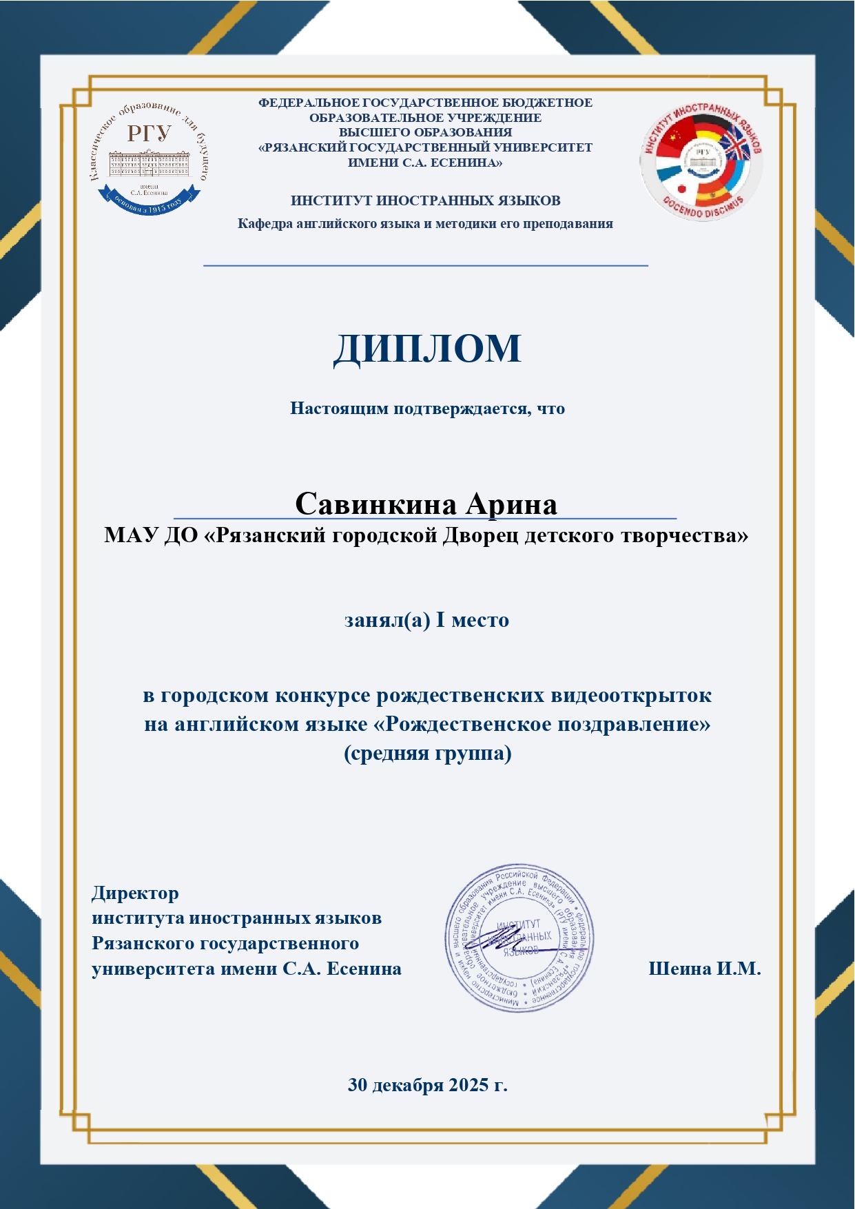 Победителями в городском конкурсе видеооткрыток на английском языке «Рождественское поздравление», организованном Институтом иностранных языков РГУ имени С.А. Есенина, стали: