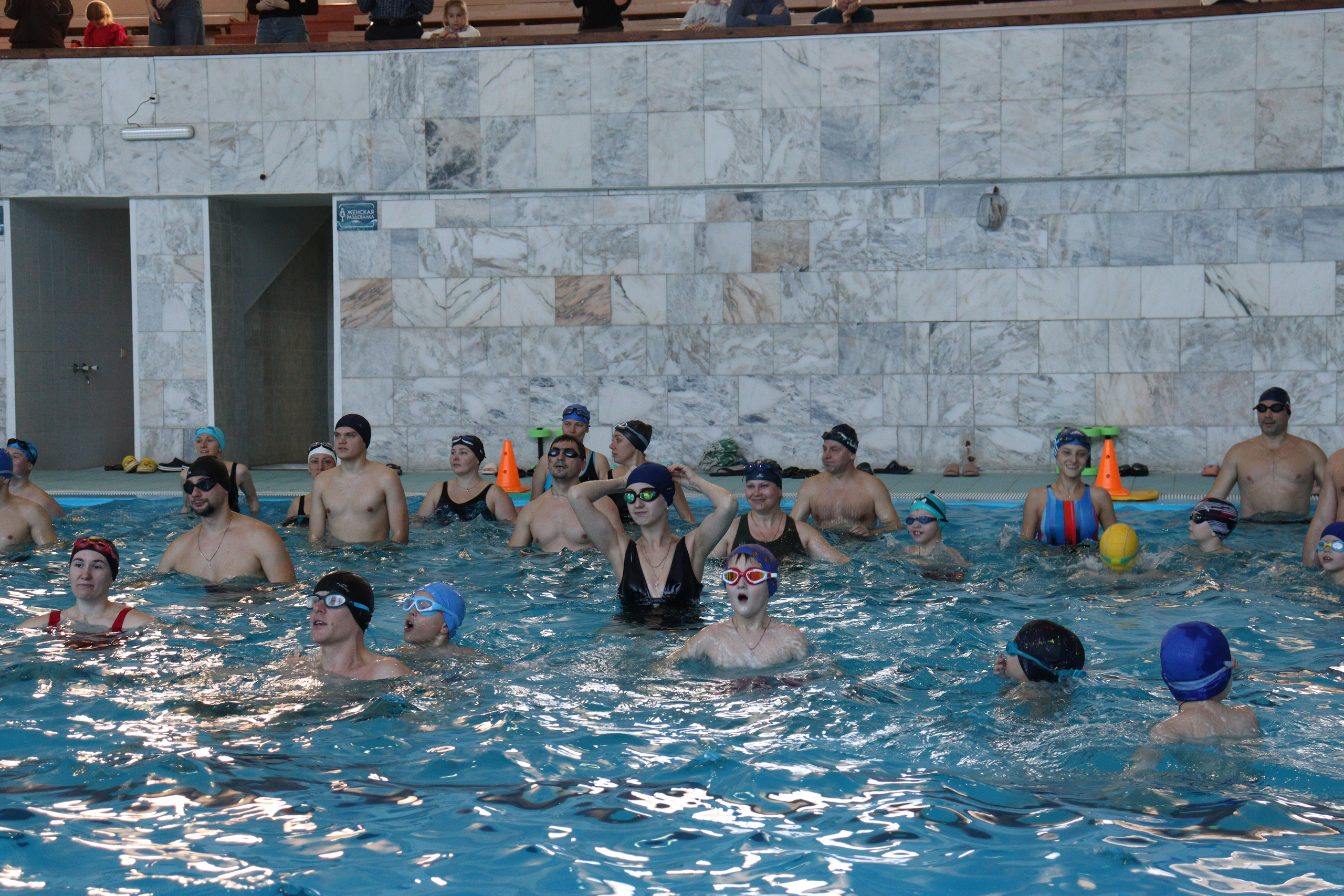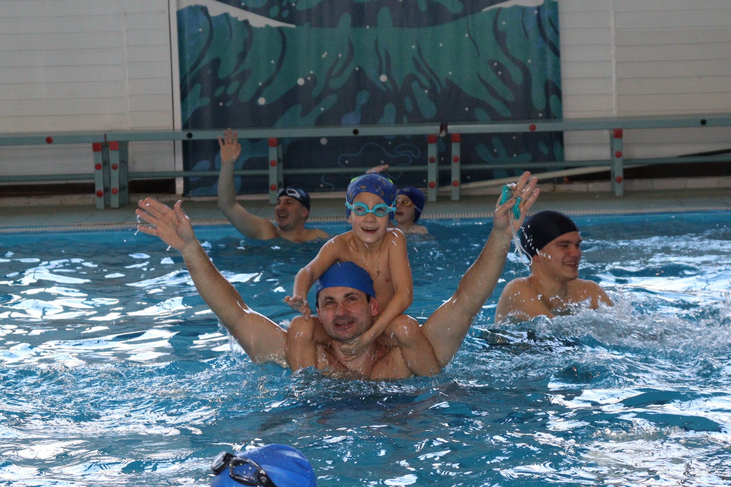 Всех гостей с прошедшими праздниками поздравили Дед Мороз, Снегурочка и озорные скоморохи, после чего тренеры по плаванию провели командную водную разминку. В соревнованиях приняли участие три сборные команды семей: «Метеоры», «Дельфины» и «Водные силачи». Все эстафеты были пройдены в атмосфере здорового соперничества и взаимоподдержки.